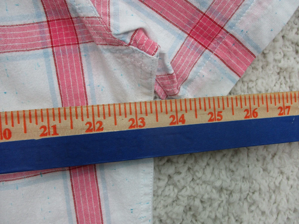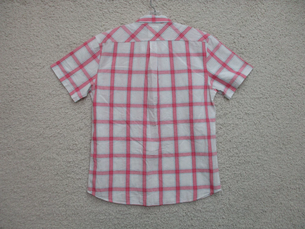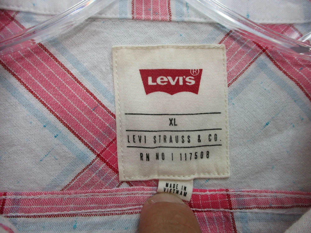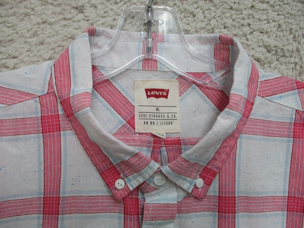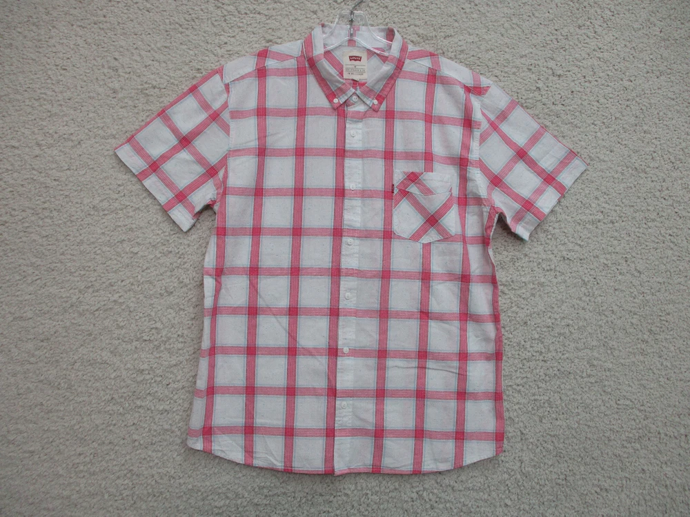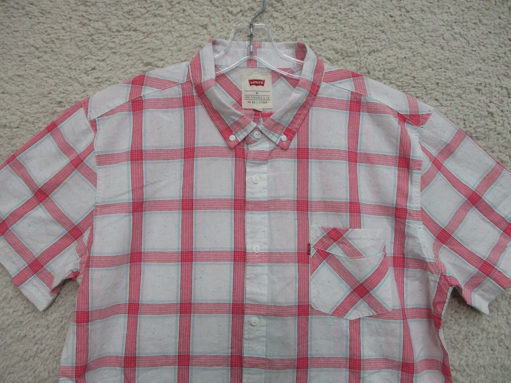 Type: Button-Up Theme: Classic Size: XL Garment Care: Machine Washable Size Type: Regular Closure: Button Country/Region of Manufacture: China Fit: Regular Seller Notes: “Very Good Used Condition. Please, See Pictures for Full Condition and Measurements.” Features: All Seasons, Easy Care, Pockets UPC: Does not apply Brand: Levi's Department: Men gtin13: Does not apply Collar Style: Button-Down Material: Cotton Blend Pattern: Check Sleeve Length: Short Sleeve Color: Pink Occasion: Casual, Formal, Workwear Neckline: Collared Season: Fall, Spring, Summer, Winter Accents: Button, Logo