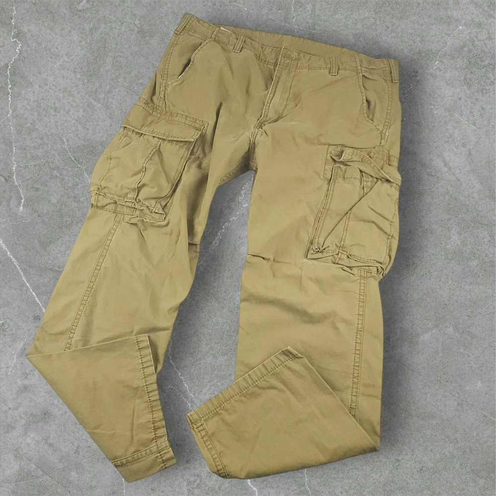Color: Tan Fit: Relaxed Personalize: No Inseam: 30 in Department: Men Closure: Zip Rise: Mid (10-12 in) Size: 36 Style: Cargo Brand: Levi's Season: Fall, Spring, Summer, Winter Leg Style: Wide-Leg Type: Pants Accents: Logo Pattern: Solid Occasion: Casual, Travel, Workwear Handmade: No Front Type: Flat Front Features: Comfort, Easy Care, Pockets, cargo Size Type: Regular Theme: thrifted, thrifted clothes, thrifted pants, hiking, outdoors, sustainable fashion, mens fashion, fashion, cabincore, cottagecore, outdoor, mens cargo pants, menswear, streetwear, skater, Punk, Y2K cargo pants, Y2K, cargo, Grunge, Rock, grungecore, levis, levis pants, levis cargo pants, Y2K cargo pants men, Y2K wide leg pants Fabric Type: Twill Country/Region of Manufacture: Egypt Waist Size: 38 in Material: Cotton Garment Care: Machine Washable Vintage: Yes Pocket Type: Slash Pocket, Cargo Pocket