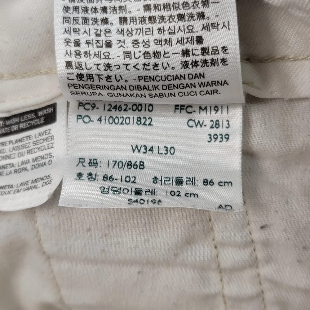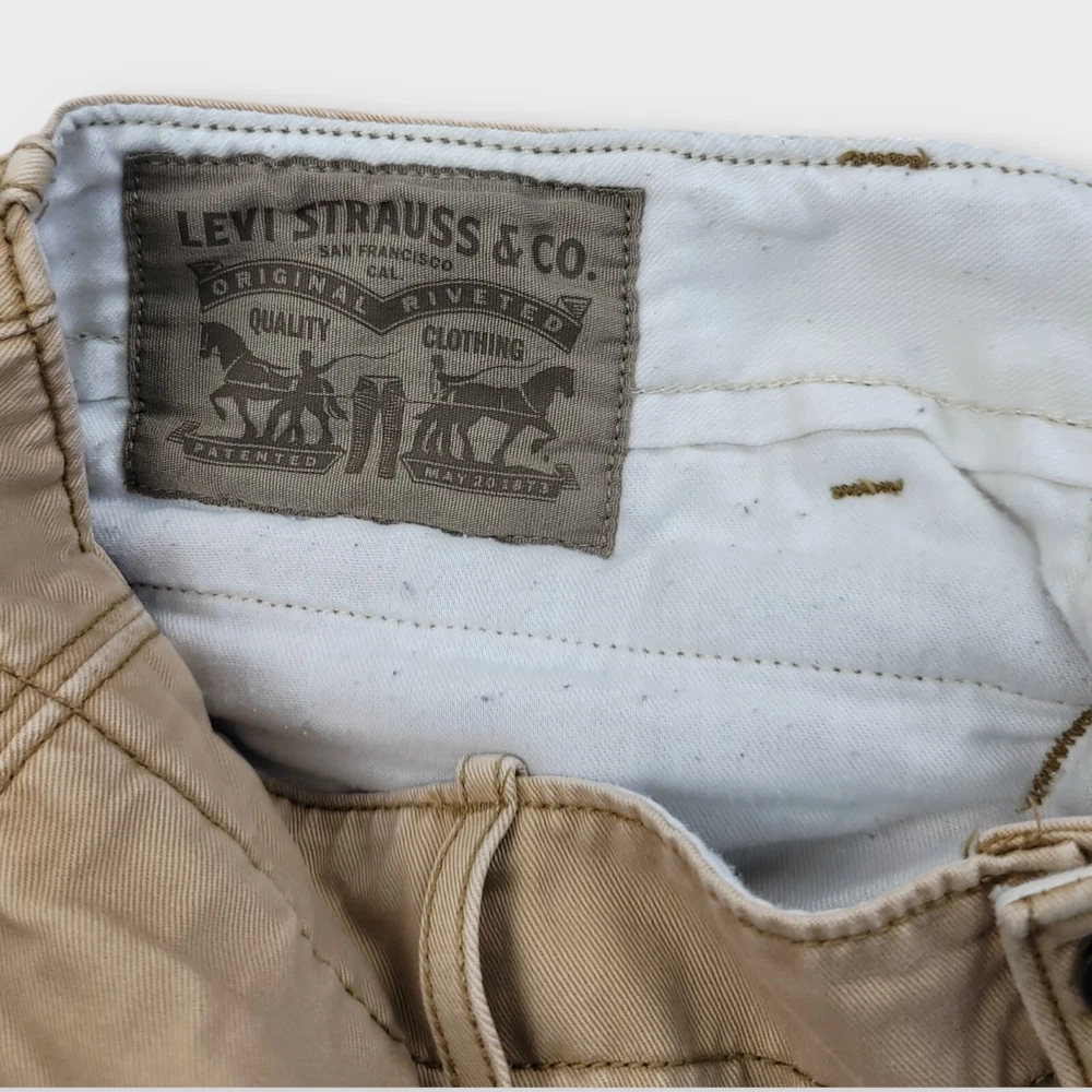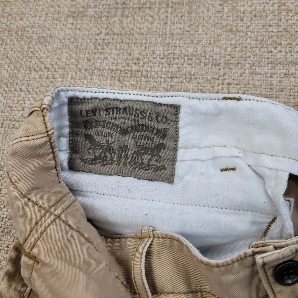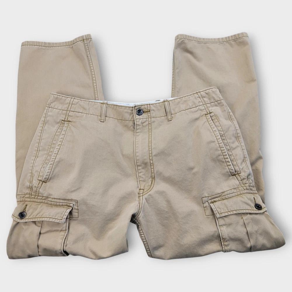 Season: Fall, Spring, Summer, Winter Personalize: No Seller Notes: “Spots on leg - Please review all photos.” Pocket Type: Cargo Pocket Features: Comfort, Easy Care, Pockets Occasion: Workwear Pattern: Solid Leg Style: Straight Front Type: Flat Front Brand: Levi's Size: 34 Handmade: No Closure: Button, Zip Color: Brown Size Type: Regular Rise: Mid (10-12 in) Country/Region of Manufacture: Cambodia Inseam: 30 in Waist Size: 35 in Fabric Type: Canvas Garment Care: Machine Washable Department: Men Style: Cargo Theme: Cowboy, Grunge, Logo, Nature Material: Cotton Vintage: No Type: Pants Accents: Logo