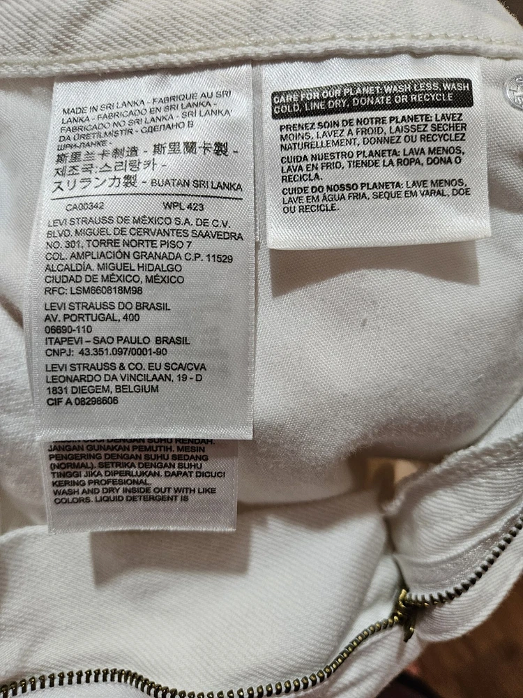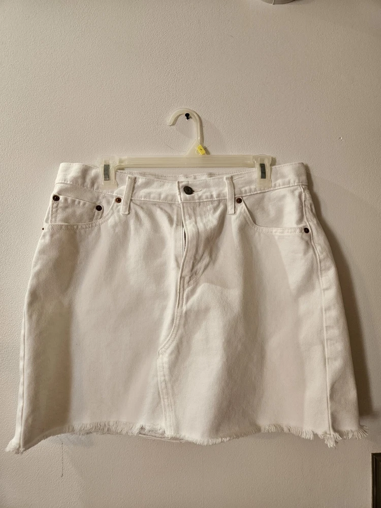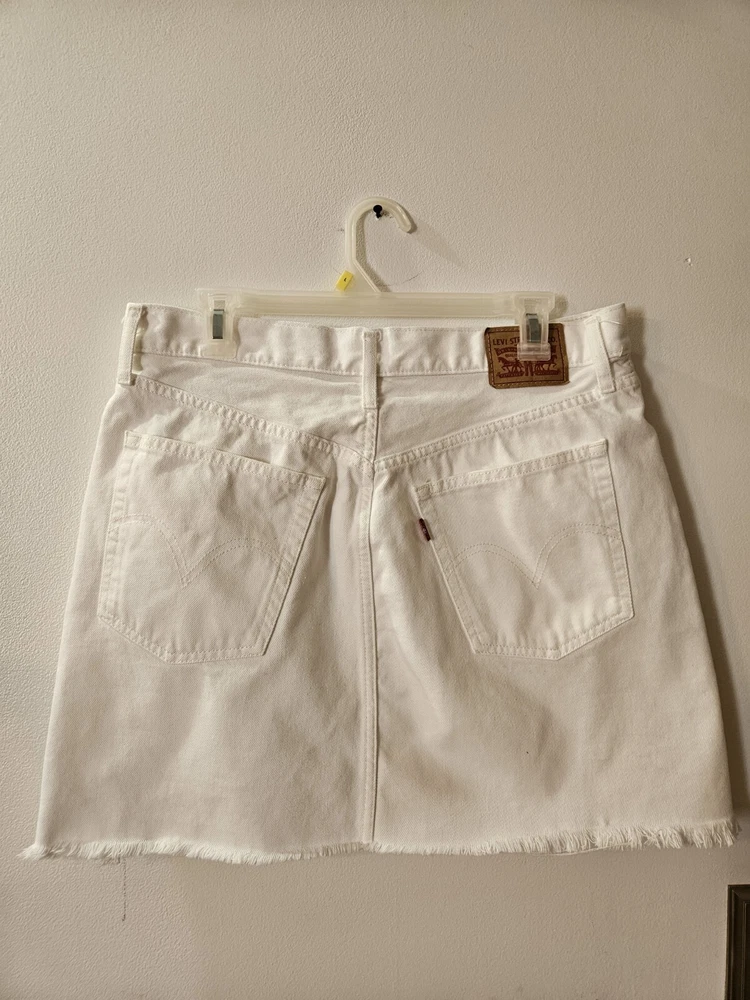 White Levi's Denim Mini Skirt. Size 32 17.5 inches long