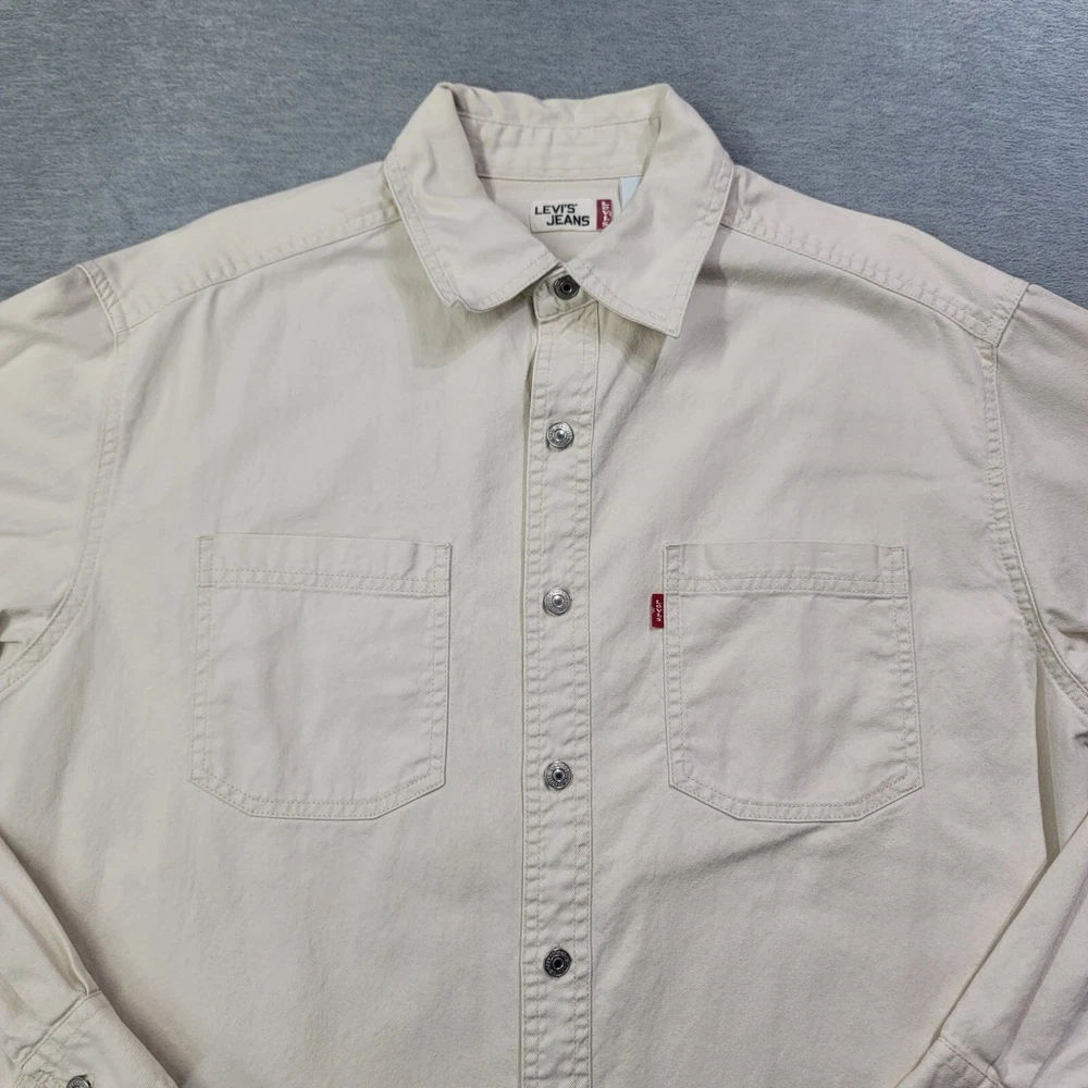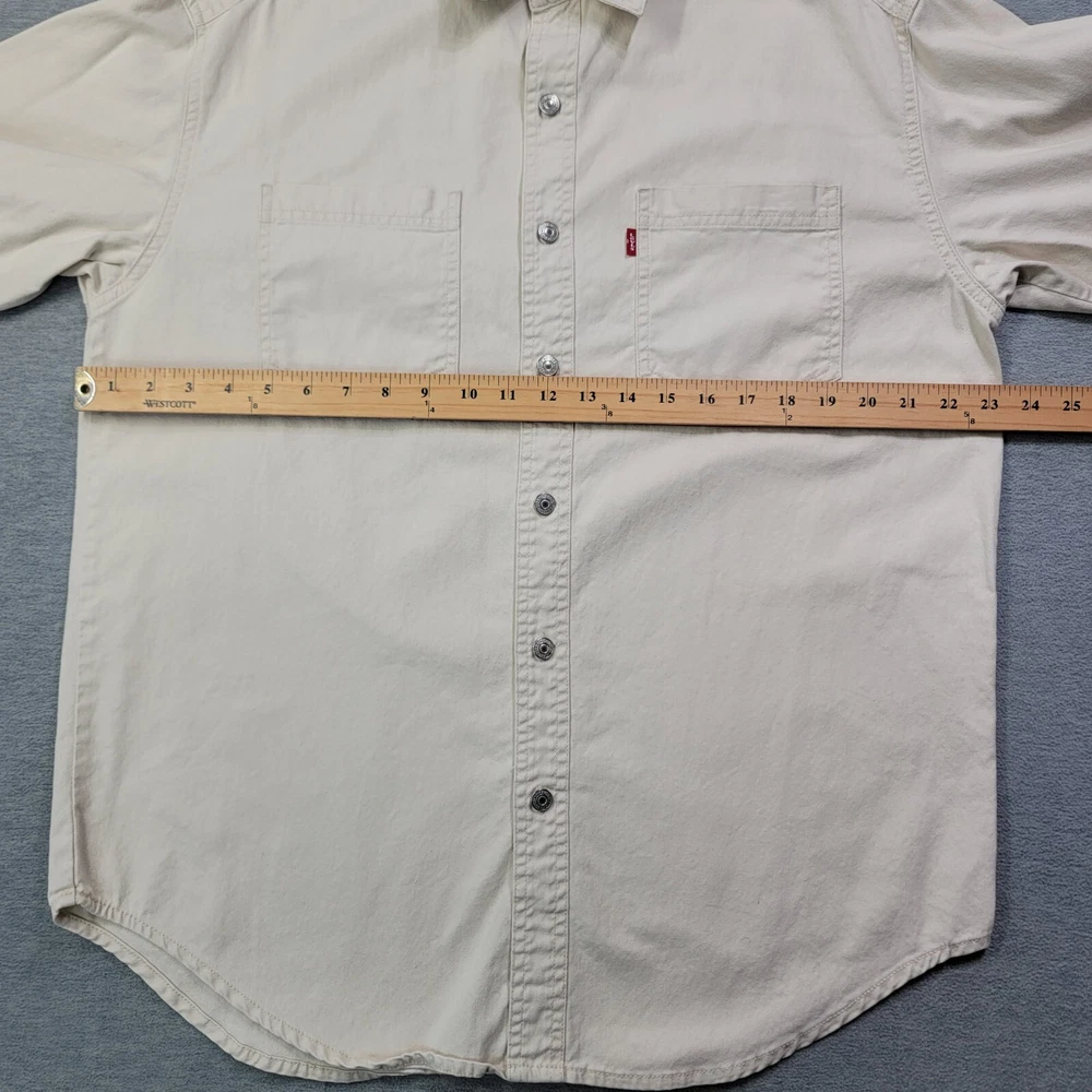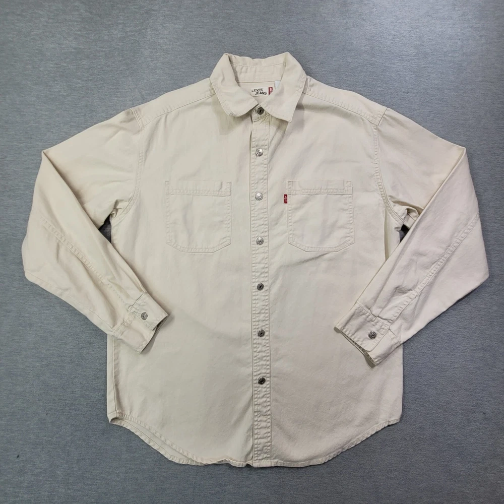 This Levi's denim shirt for men in size medium features a solid pattern with long sleeves and a collared neckline. The button-up closure and red color add a touch of style, while the cotton material and denim fabric type ensure comfort and durability. The shirt also includes chest pockets and a point collar style, making it a versatile addition to any wardrobe. Perfect for casual occasions, this shirt is a must-have for any fashion-conscious man.