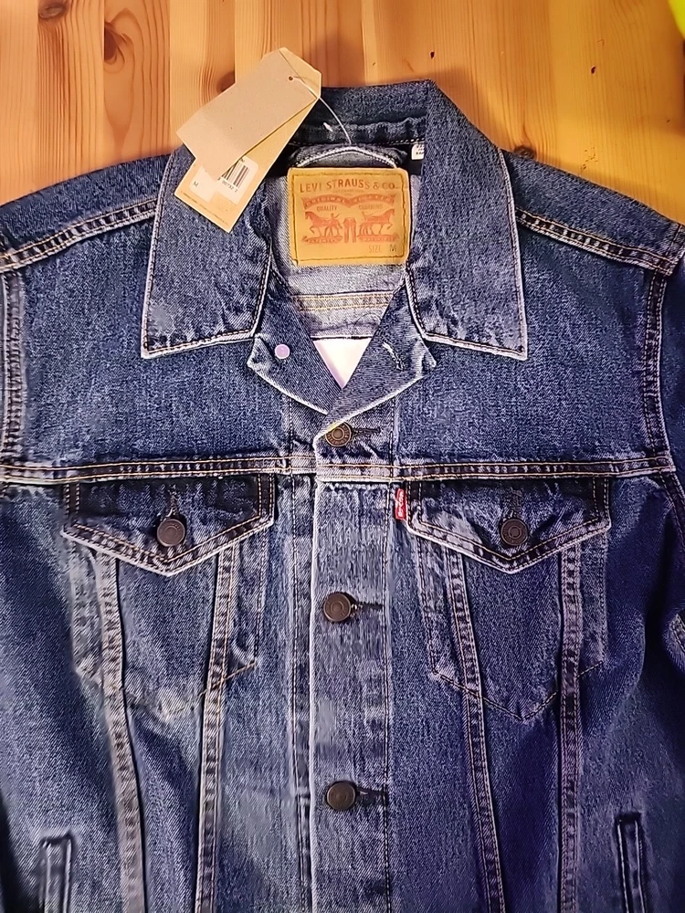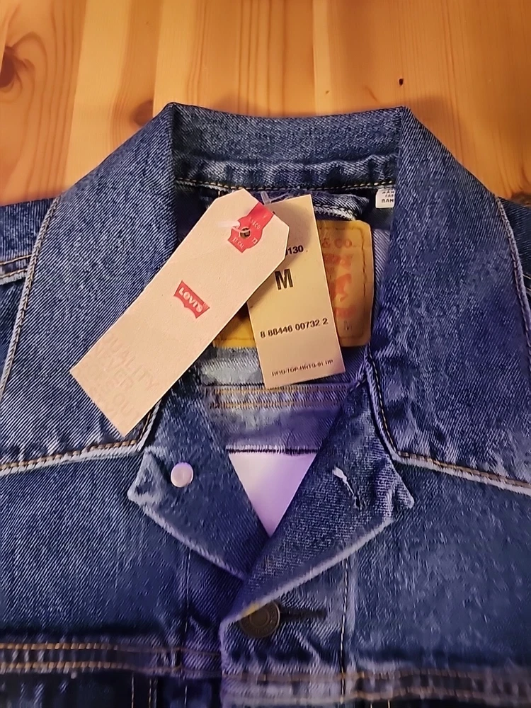 Crafted for the Miller High Life enthusiast, this Levi's trucker jacket boasts a unique back patch that celebrates the iconic beer brand. Its durable cotton denim fabric provides a classic, sturdy feel while maintaining a lightweight structure ideal for layering. The jacket features a solid blue colour that's versatile for various occasions, from casual outings to more put-together looks. The medium-sized, regular fit jacket offers a timeless collared style, perfect for workwear or weekend adventures. It's designed with a button closure for easy wear, and the lack of lining keeps it breathable and comfortable. Embroidered accents add a distinctive touch to this limited edition piece, making it a noteworthy addition to any wardrobe.