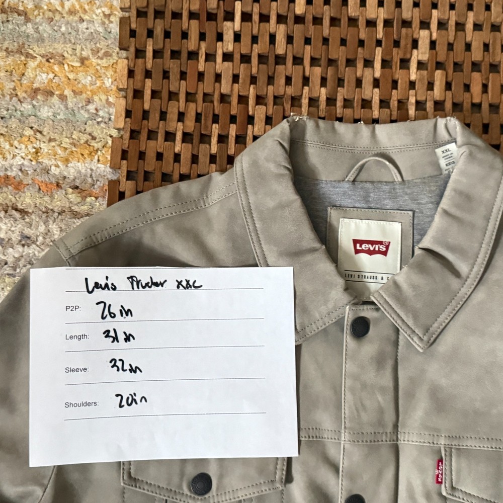 The Levi's Grey Button Down Trucker Jacket in Men's Size XXL 2XL is a classic and versatile outerwear piece perfect for casual occasions. Made from durable cotton denim with a polyester insulation material, this mid-length jacket offers warmth and comfort during the winter, fall, and spring seasons. The button-down collar and button closure add a stylish touch to the solid gray color, making it a timeless addition to any wardrobe. Easy to care for with machine washable instructions, this Levi's jacket is a staple for any man looking for a reliable and fashionable piece of clothing. Scuff at collar, priced accordingly.