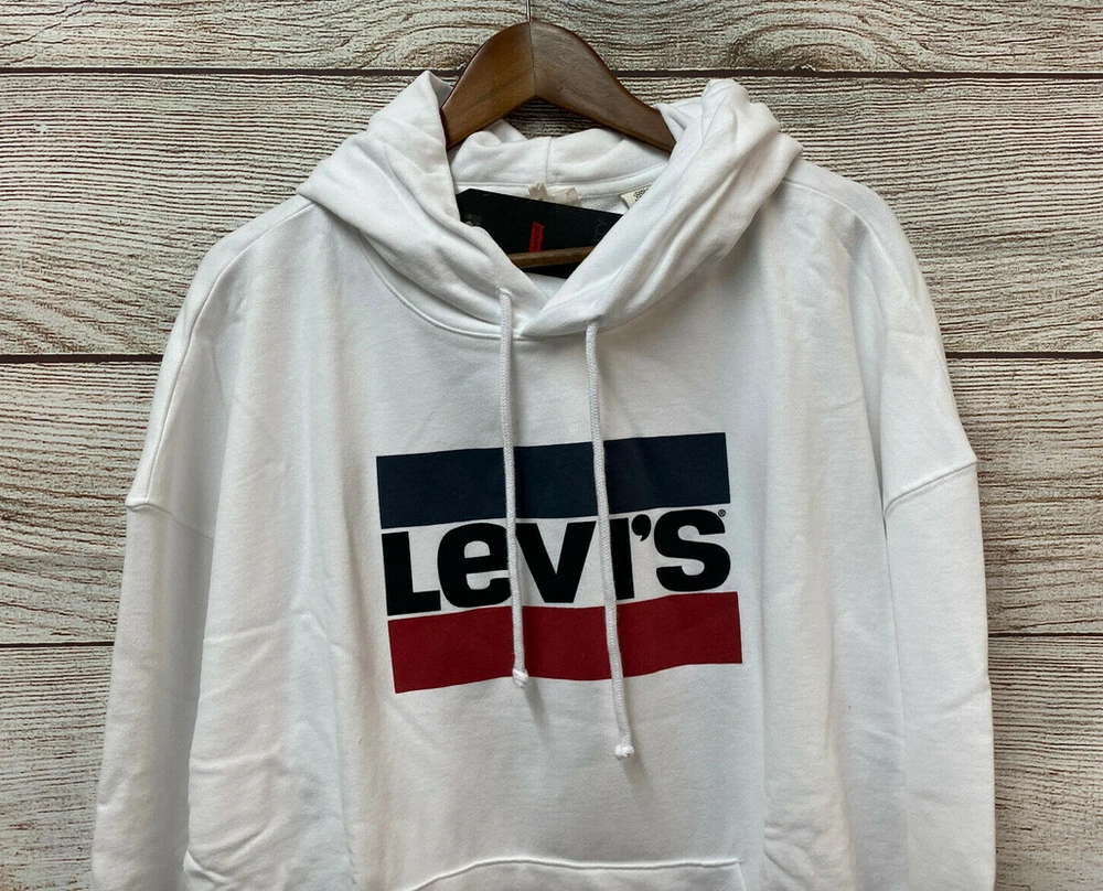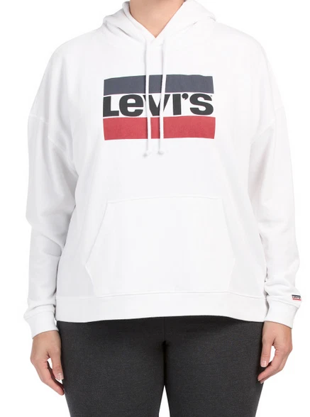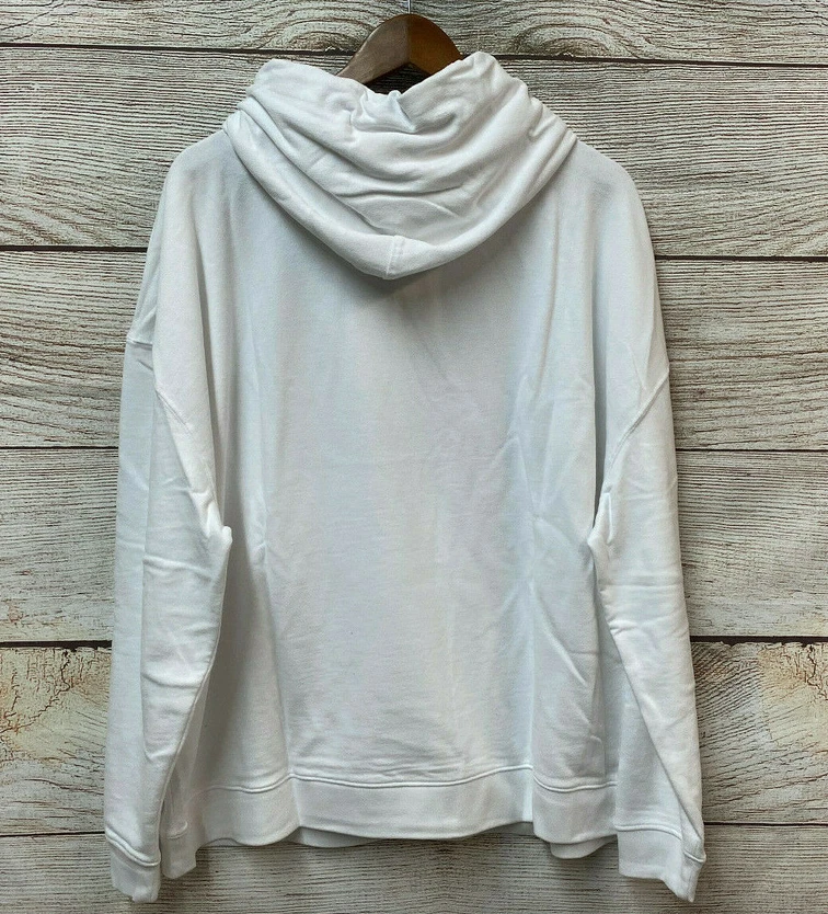Measurements Underarm to underarm: 30" Length: 26.5" Retails for $59.50 Graphic logo design, kangaroo pocket, brushed interior, baby ribbed trim Long sleeve, drawstring hood Mid-weight knit Cotton/polyester Imported Machine wash Style #:1000649673