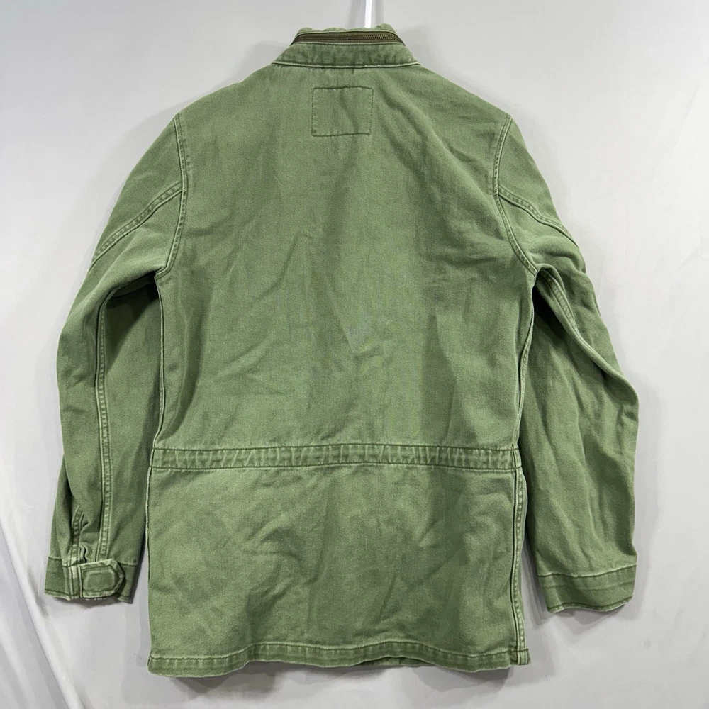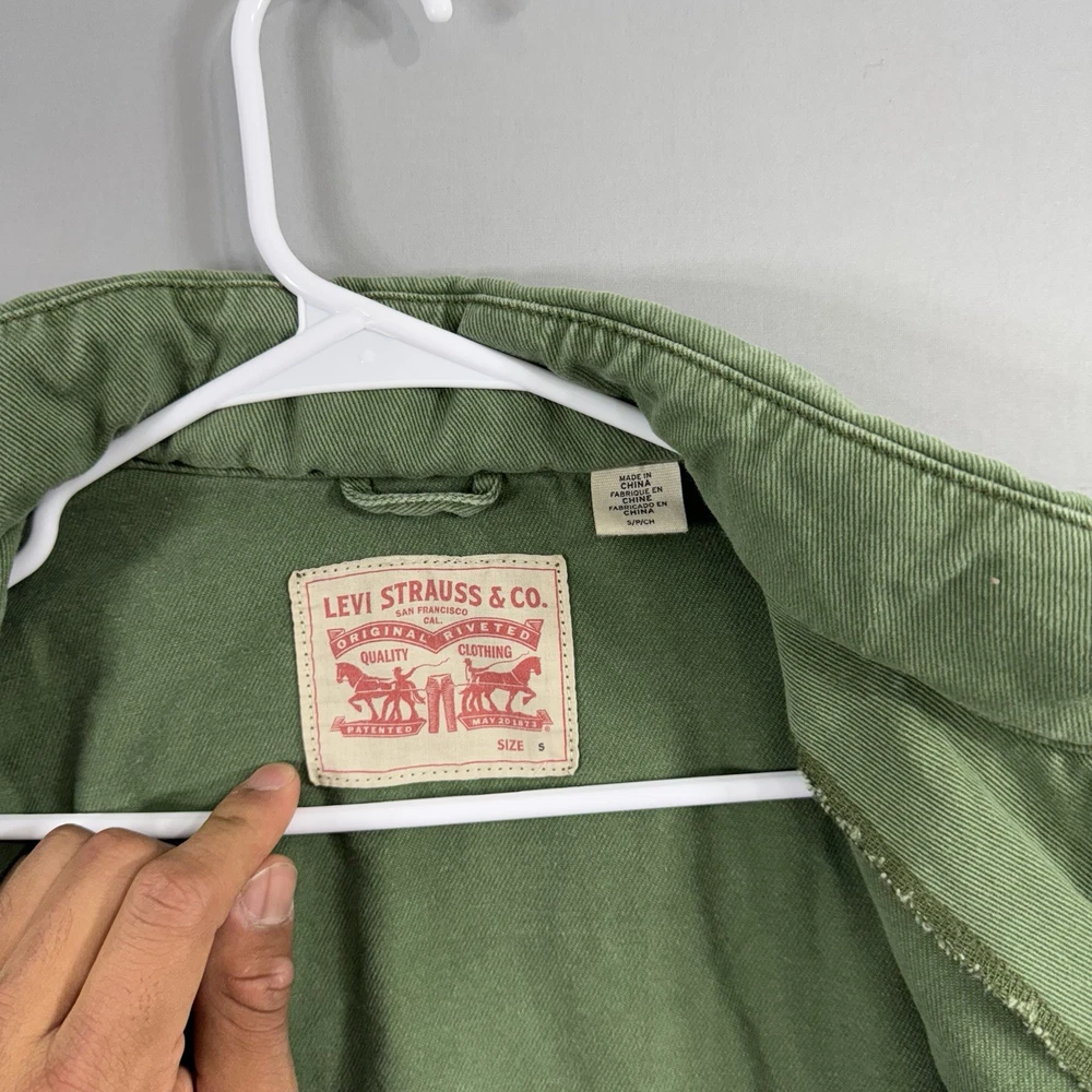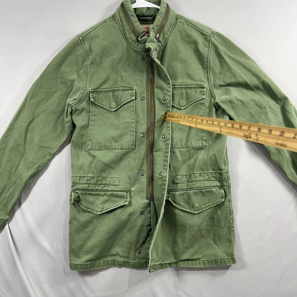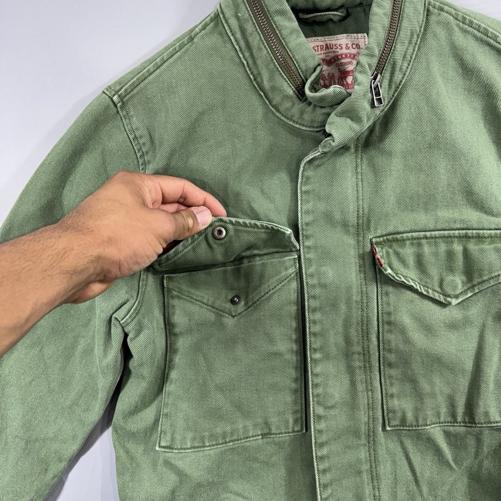 Crafted for durability and comfort, this Levi's men's chore coat is an ideal addition to your outdoor wardrobe. The sturdy cotton canvas construction ensures longevity, while the solid green color offers versatility. Designed with practicality in mind, it features a hood, multiple pockets for essentials, and a secure snap, button, and zip closure to guard against the elements. The jacket's long length, stand-up collar, and regular fit cater to a classic military jacket silhouette, complemented by the distinctive Levi's logo accent. Whether you're walking, hiking, or engaging in any outdoor activity, this jacket provides a blend of functionality and style without compromising on comfort. It's a piece that effortlessly combines the robustness of army and biker themes with a touch of USA-inspired outdoor flair.