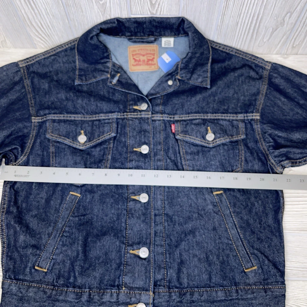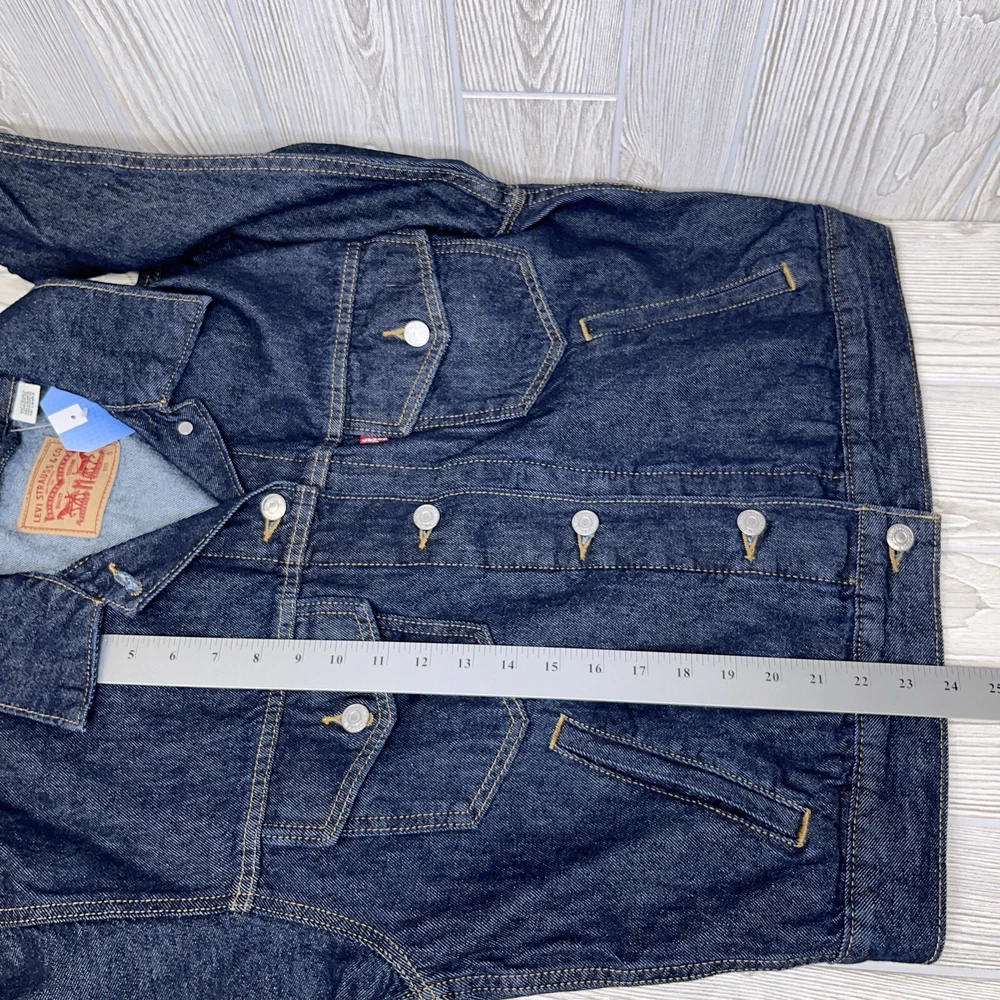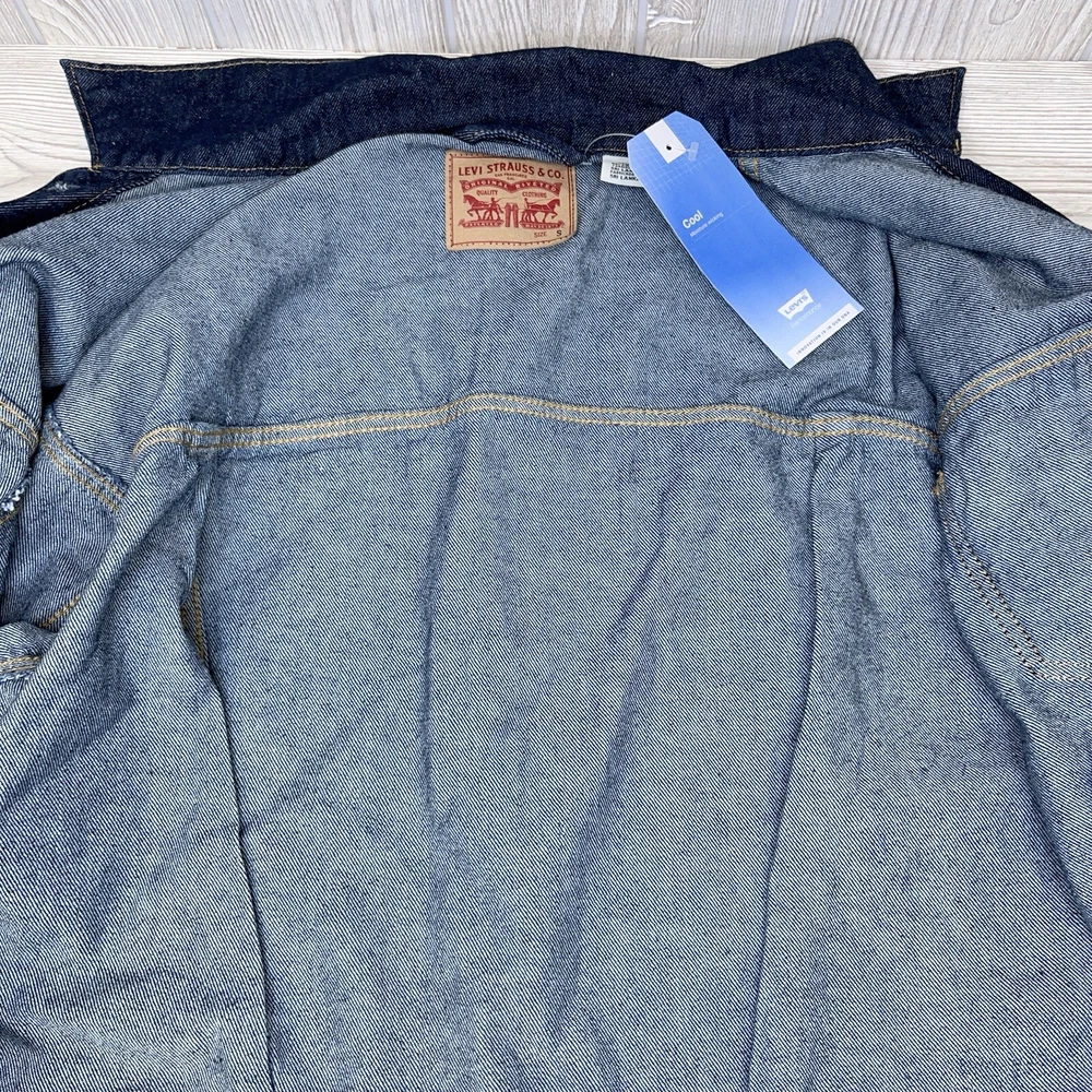 Levi's Jacket Womens Blue Jean Denim Cool Wicking Trucker Size Small *READ. This coat is stamped IRREGULAR on the inside tag but no issues are visable. The pit-to-pit measurement is approximately 21 inches. The length measurement is approximately 23.5 inches. Measurements taken from the outside front of the garment. The condition is New with Tags.