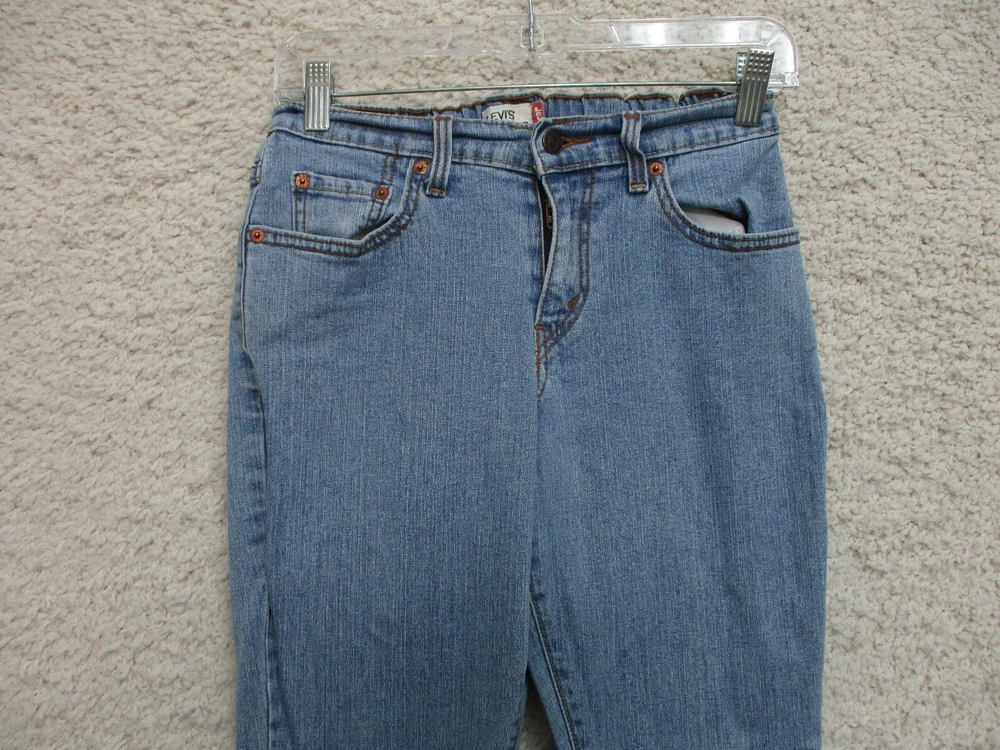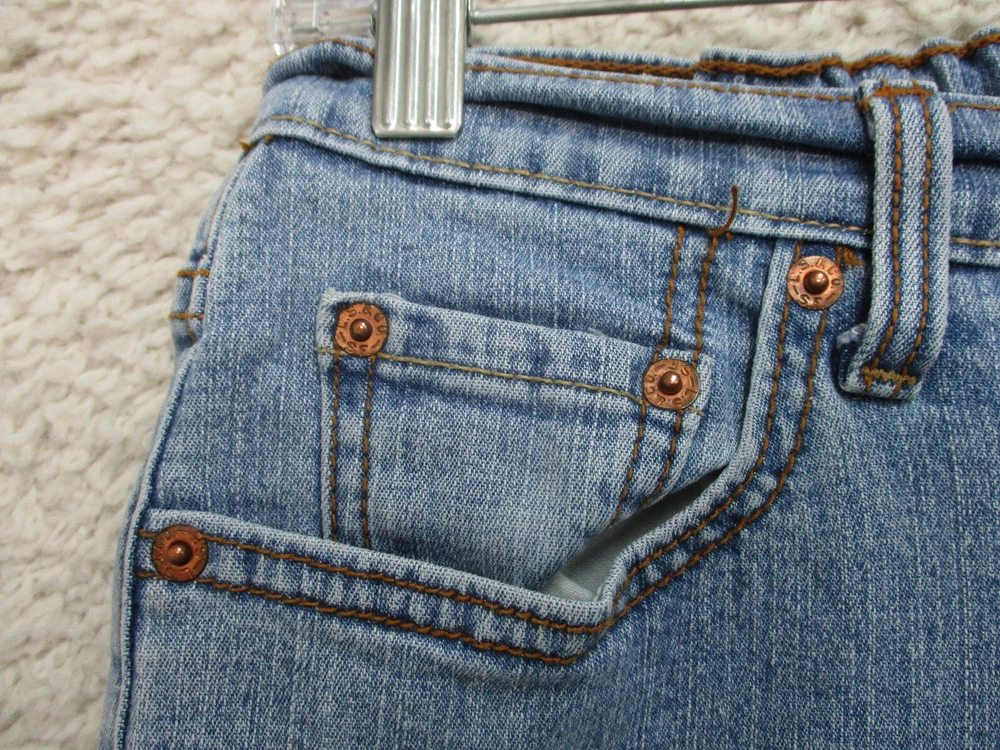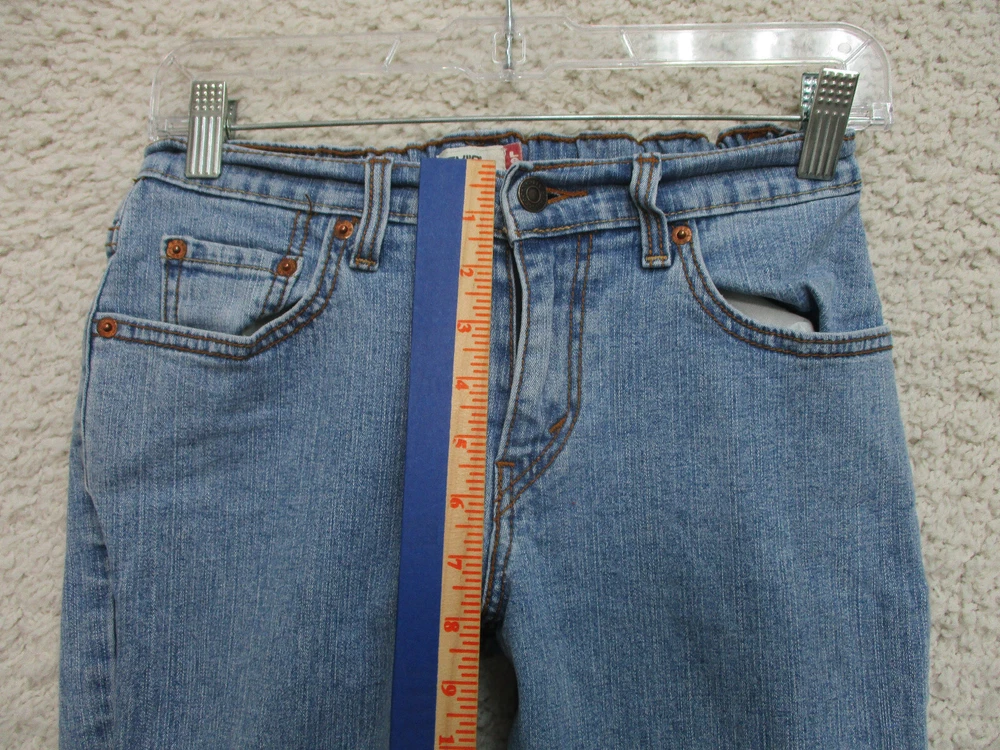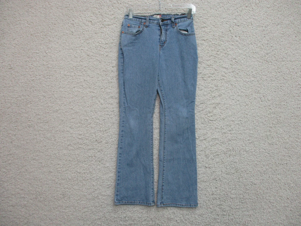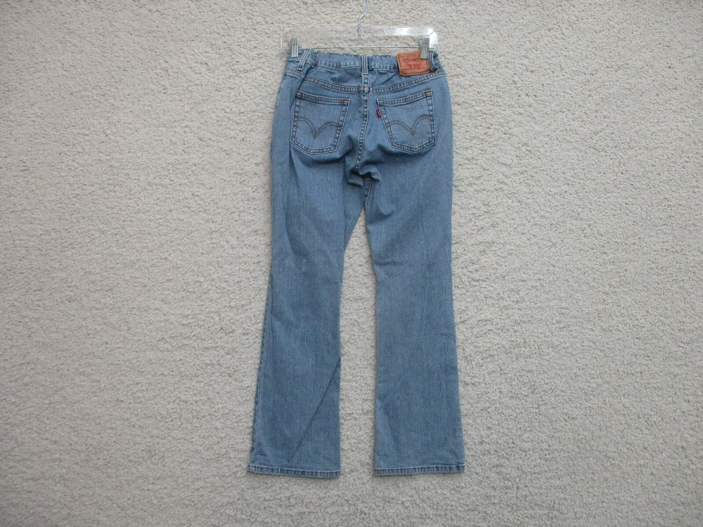 Pattern: Solid Waist Size: 26 in Fit: Regular Brand: Levi's Theme: American, Logo, Modern Pocket Type: 5-Pocket Design Type: Jeans Accents: Button, Logo Suspender Buttons/Belt Loops: Belt Loops Country/Region of Manufacture: China Season: Fall, Spring, Summer, Winter gtin13: Does Not Apply Size: 4 Color: Blue Style: Bootcut Garment Care: Machine Washable Fabric Wash: Light Inseam: 29 in UPC: Does Not Apply Department: Women Closure: Zip Fabric Type: Denim Features: Comfort, Easy Care, Pockets, Stretch Material: Cotton, Cotton Blend Size Type: Regular Rise: Mid (8.5-10.5 in)