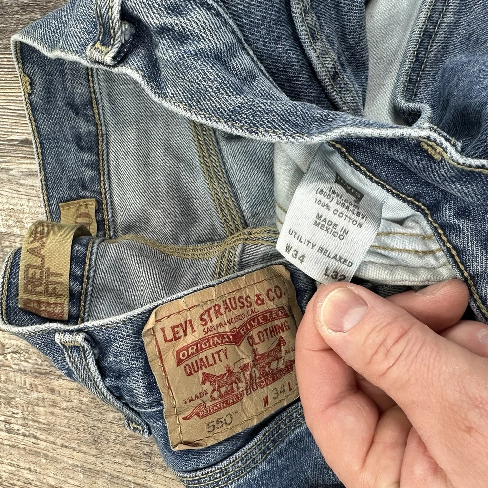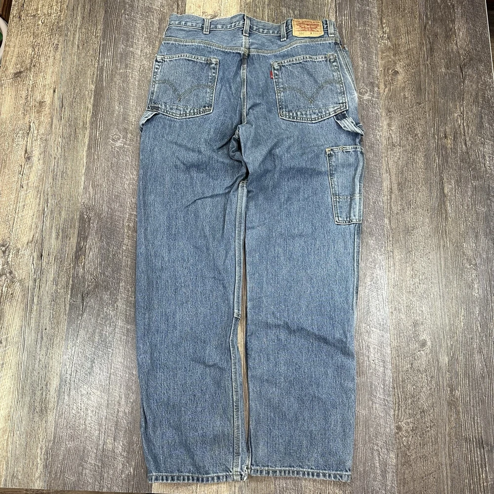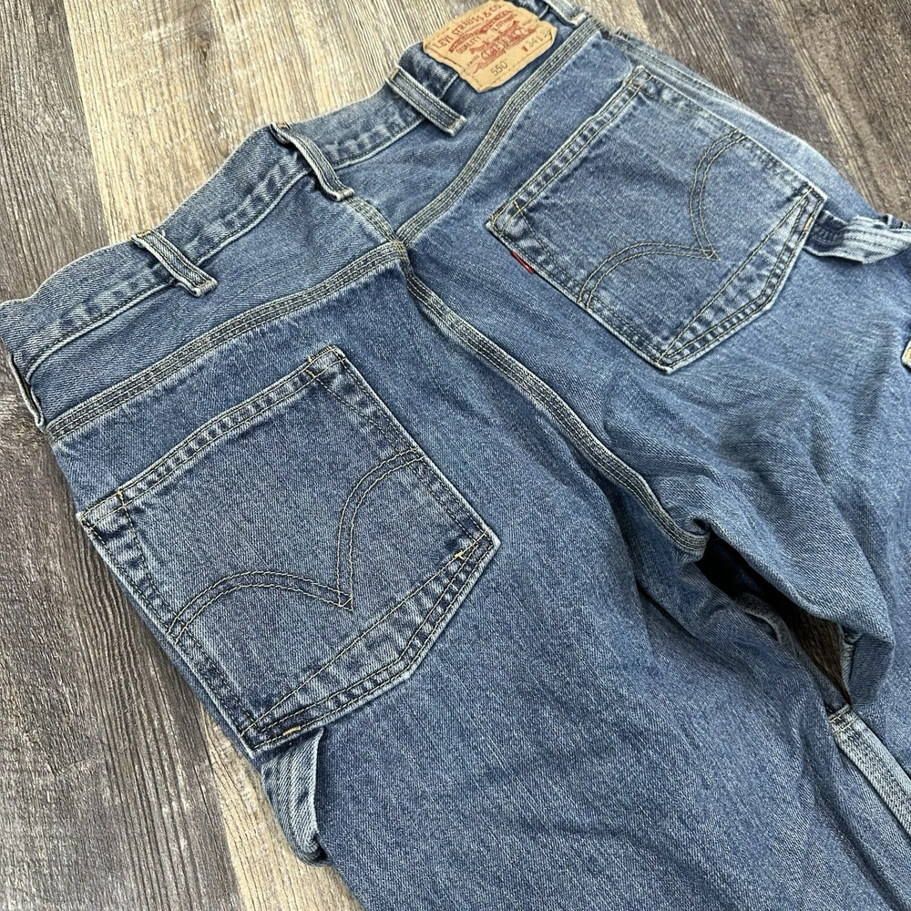 Vintage Levis 550 Relaxed Fit Utility Carpenter Blue Jeans - Medium Denim Wash 100% Cotton Men's Size - Tagged 34x32 - See Pictures After Wash/Dry Measurements Single cut on hem both left and right pant leg NOTE: Please see all photos for condition as all flaws will be shown throughout the photos! * COLORS MAY BE DARKER OR LIGHTER OR SLIGHTLY DIFFERENT DUE TO MONITOR/PHONE/TABLET SETTINGS. Please refer to the "condition description" for inspection notes. Actual measurements may differ from the tag due to potential shrinkage, stretching, hemming, or manufacturer error. It is common for pre-owned jeans to shrink or stretch based on how they were washed/dried/worn from previous owners. If measurement differs more than 1.5" either way from what the tag says, I will list the items as actual measurements to ensure proper fit. I recommend measuring yourself before ordering online to help find the perfect fit for you. My shipping discount: $3 shipping on each additional item you add to your order!