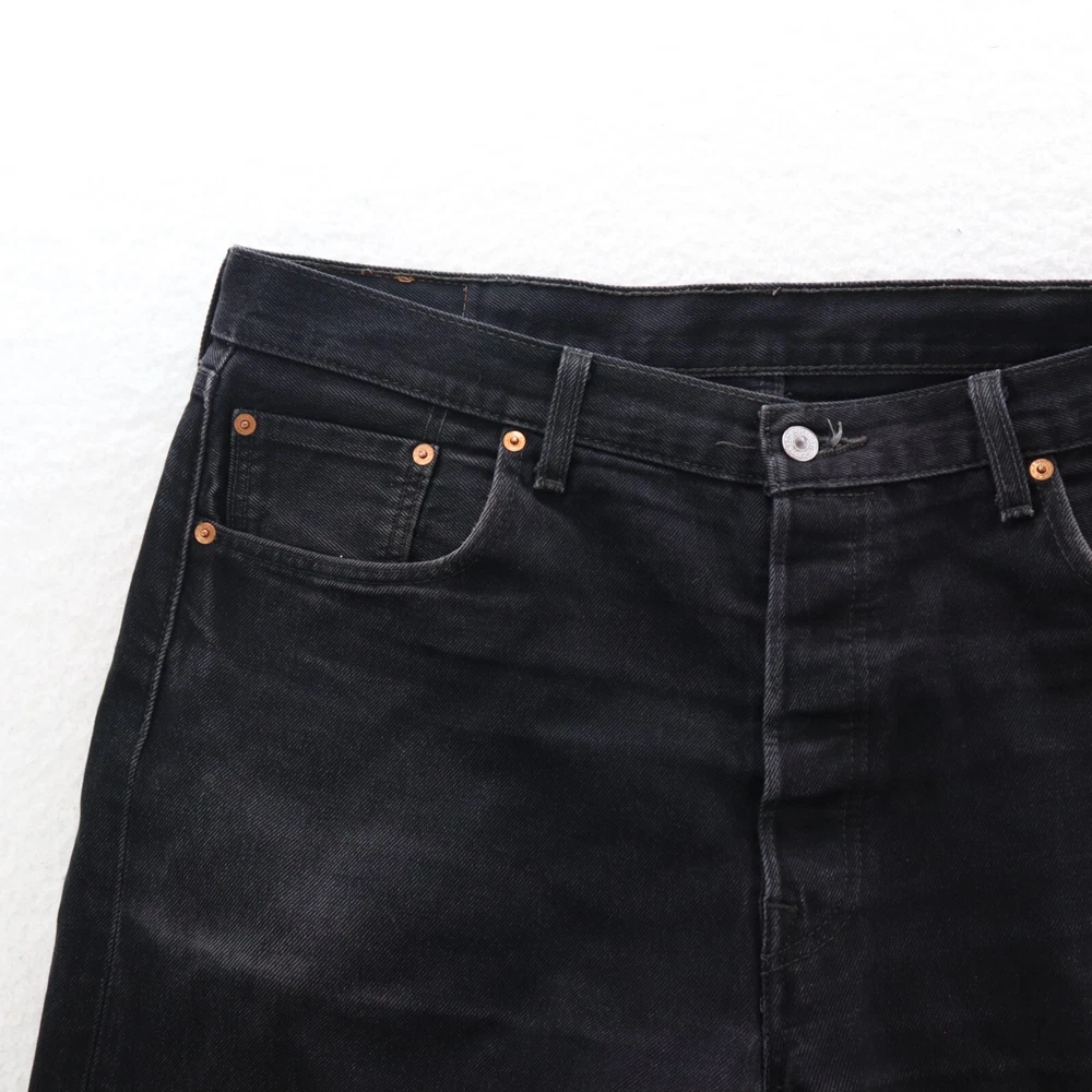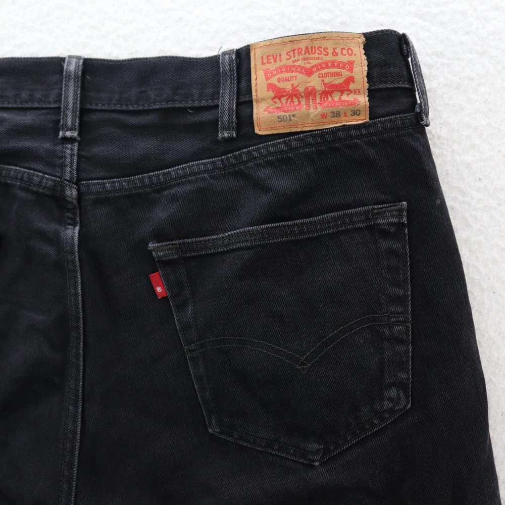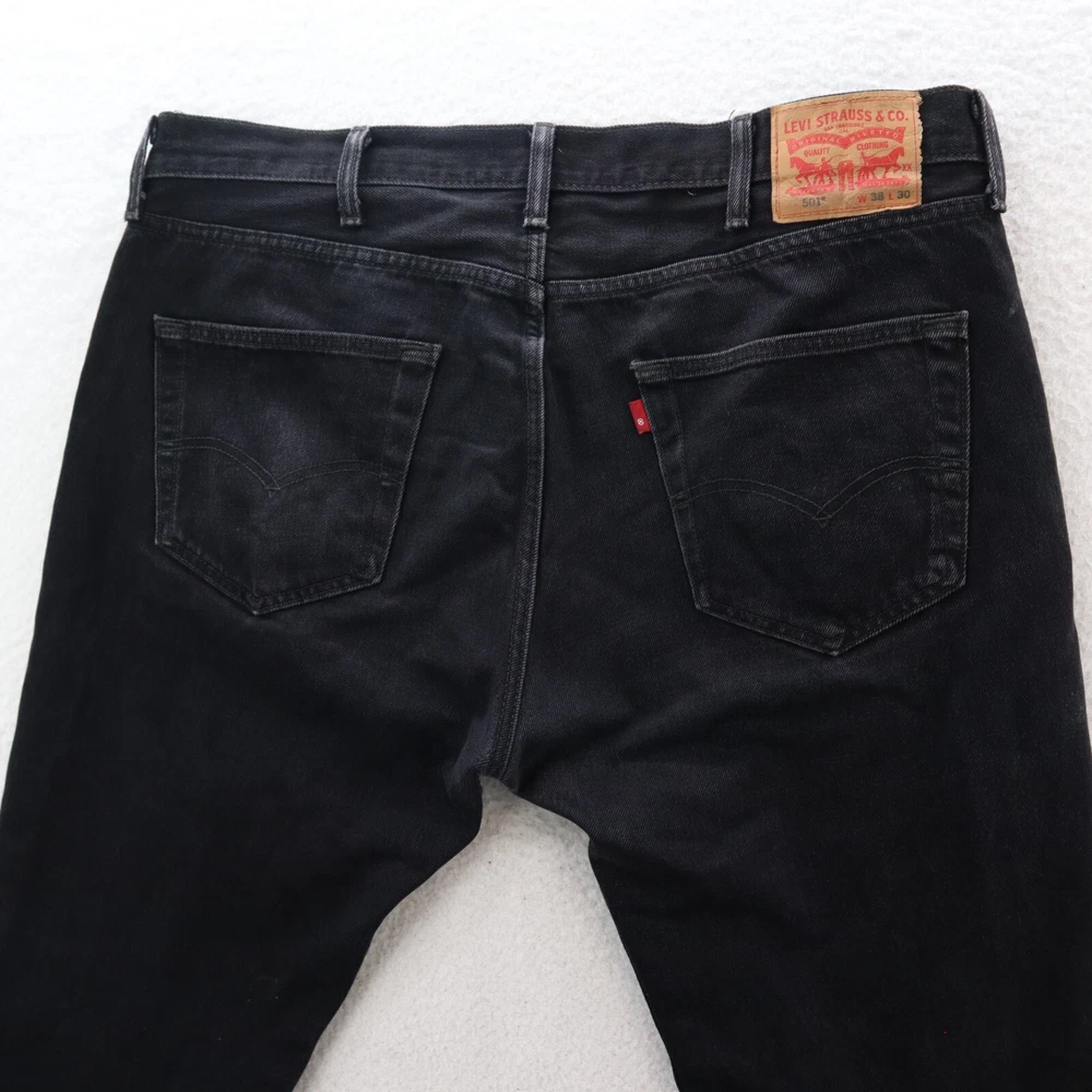 Material: Cotton Fabric Type: Denim Rise: Mid (10-12 in) Seller Notes: “Great pre-owned condition!” Brand: Levi's Features: Easy Care, Pockets Department: Men Size Type: Regular Waist Size: 38 in Pocket Type: 5-Pocket Design Handmade: No Accents: Button, Logo Size: 38 Product Line: Levi'S 501 Series Garment Care: Machine Washable Personalize: No Style: Straight Closure: Button Inseam: 30 in Color: Black Season: Fall, Spring, Summer, Winter Model: Levi's 501 Type: Jeans Pattern: Solid Theme: 90s, Grunge, USA, Classic, Skate Country/Region of Manufacture: Egypt Vintage: No Fit: Classic Fabric Wash: Dark