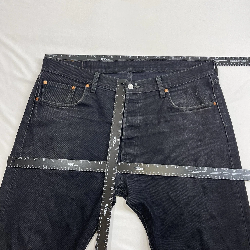 Levi's Jeans Men's 38x30 Black 501 Button Fly Straight Fit Denim American Grunge This item is in pre-owned condition and therefore may show signs of previous use, such as small stains, holes, or other wear. Please view all of the items photos as any defects will be documented there. Sizing in the title and item specifics are based on what the tag says. Measurements can be seen in the photos.