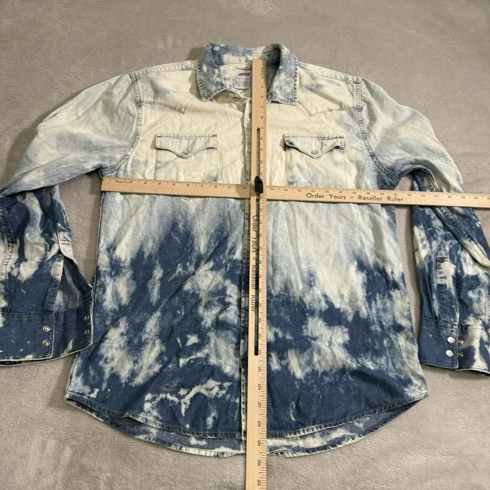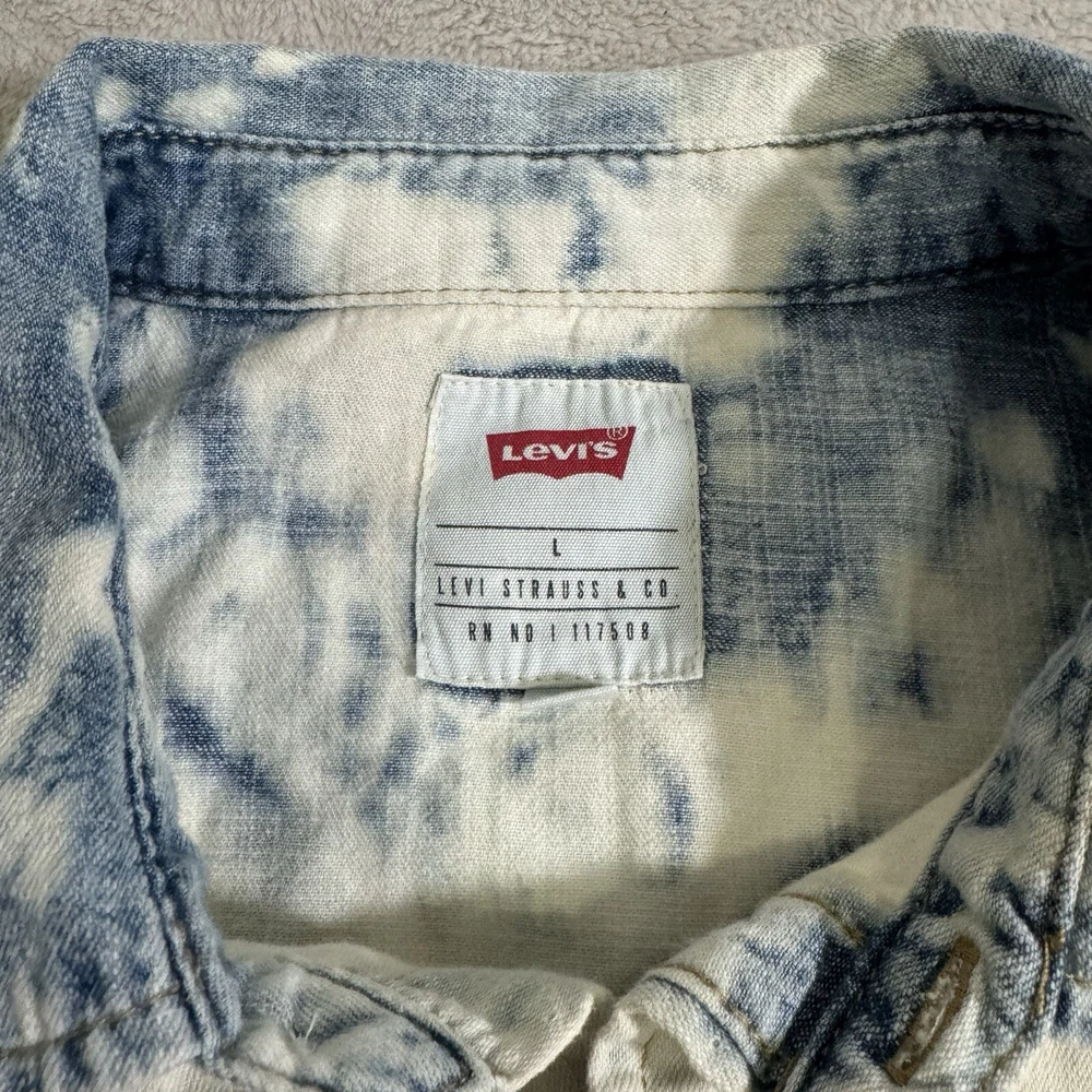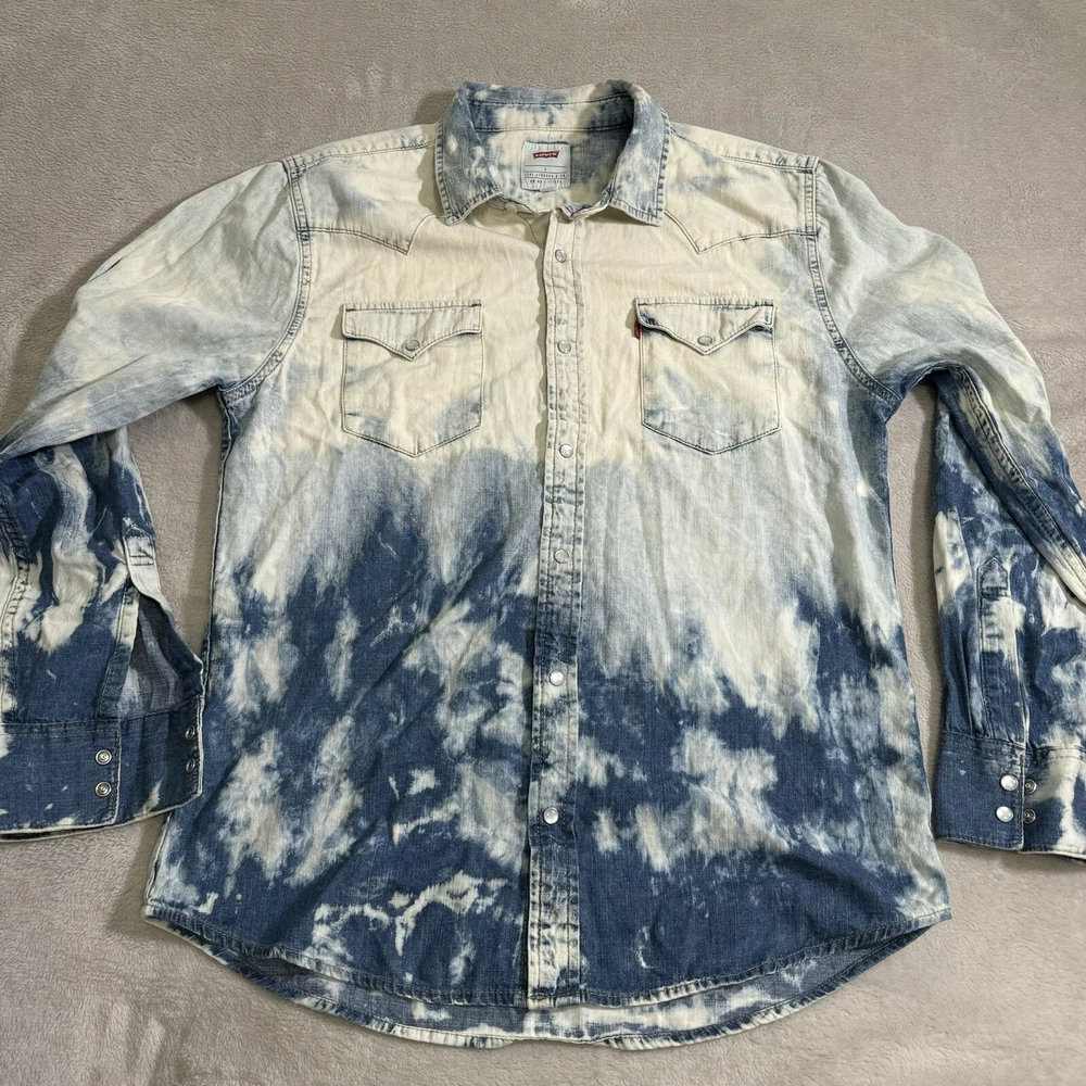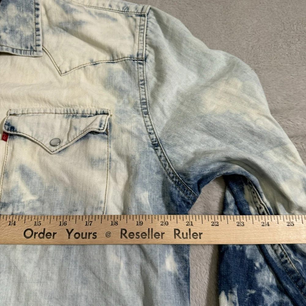 Levi’s Large Men Acid Wash Shirt Denim Chambray Pearl Snap