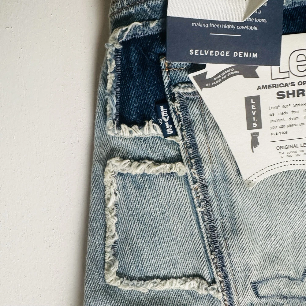 New with tags, perfect condition MSRP $248 Button fly Patchwork Straight leg Men’s size 31 X 34 Please see pictures for approximate measurements All sales are final. Thank you.