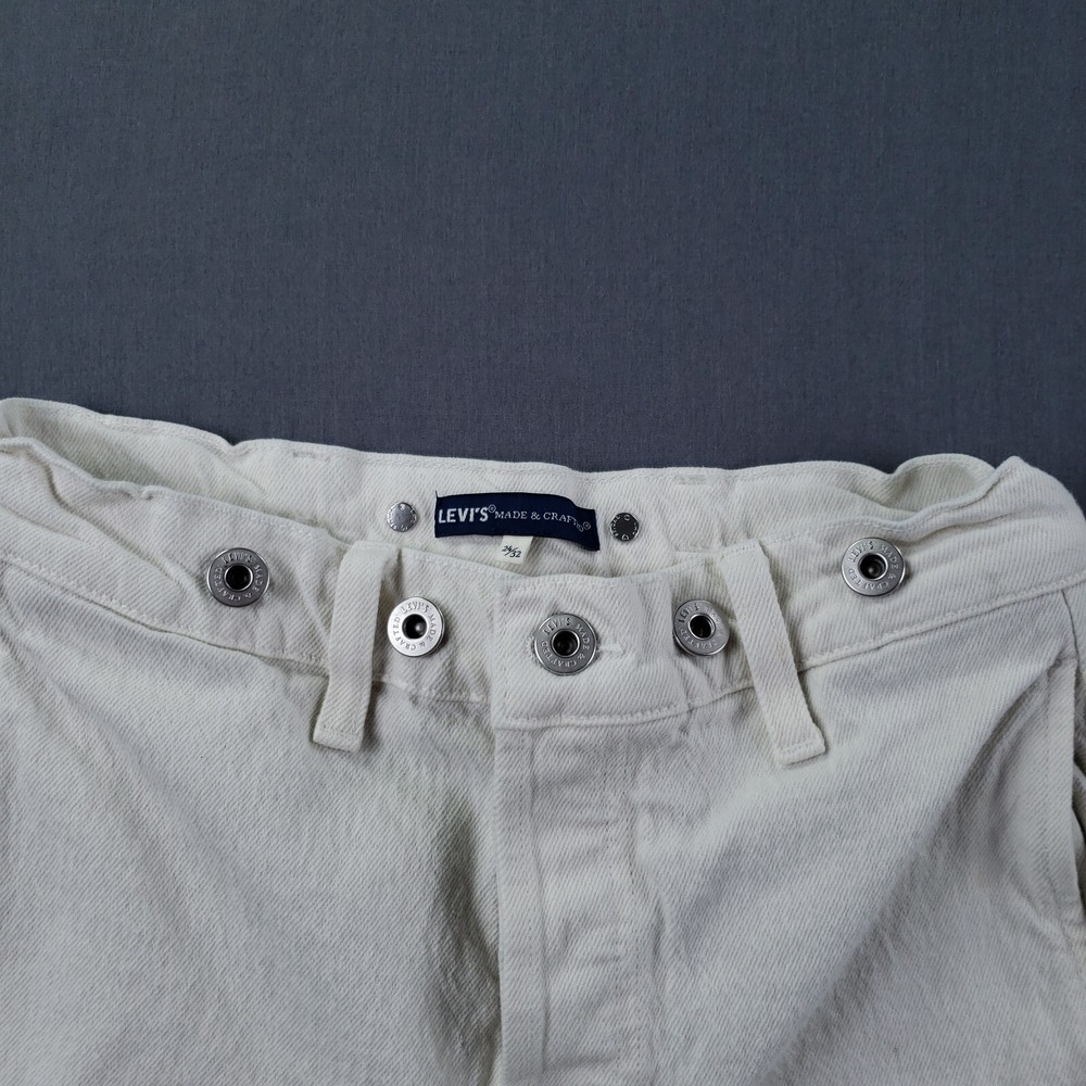 These Levi's Made & Crafted jeans are amazing! The white artillery style is so stylish and versatile, fitting perfectly with a 24x32 size. The denim feels high-quality, and the blue tab adds a cool vintage touch. They're in great condition—colors are still vibrant, and they've been cleaned well. Shipping was super fast, and the seller was responsive. Love these jeans—definitely worth it!