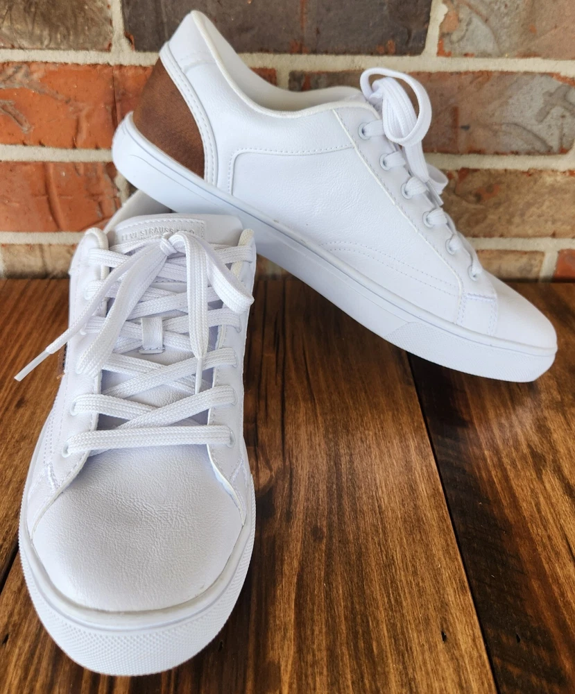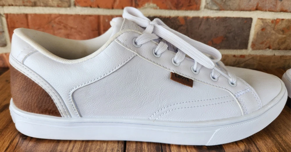 Elevate your casual look with these stylish Levi's Jeffrey-501-Tumbled-UL sneakers. Designed for men, these sneakers are perfect for any casual occasion. The white faux leather upper material gives the sneakers a trendy and sophisticated look, while the tumbled detailing adds a unique touch. With a US shoe size of 9.5, these sneakers are perfect for those who want both comfort and style. The low-top design allows for easy movement and the sneaker style makes them perfect for any activity. Whether you're running errands or going out with friends, these Levi's Jeffrey-501-Tumbled-UL sneakers will complete any outfit.