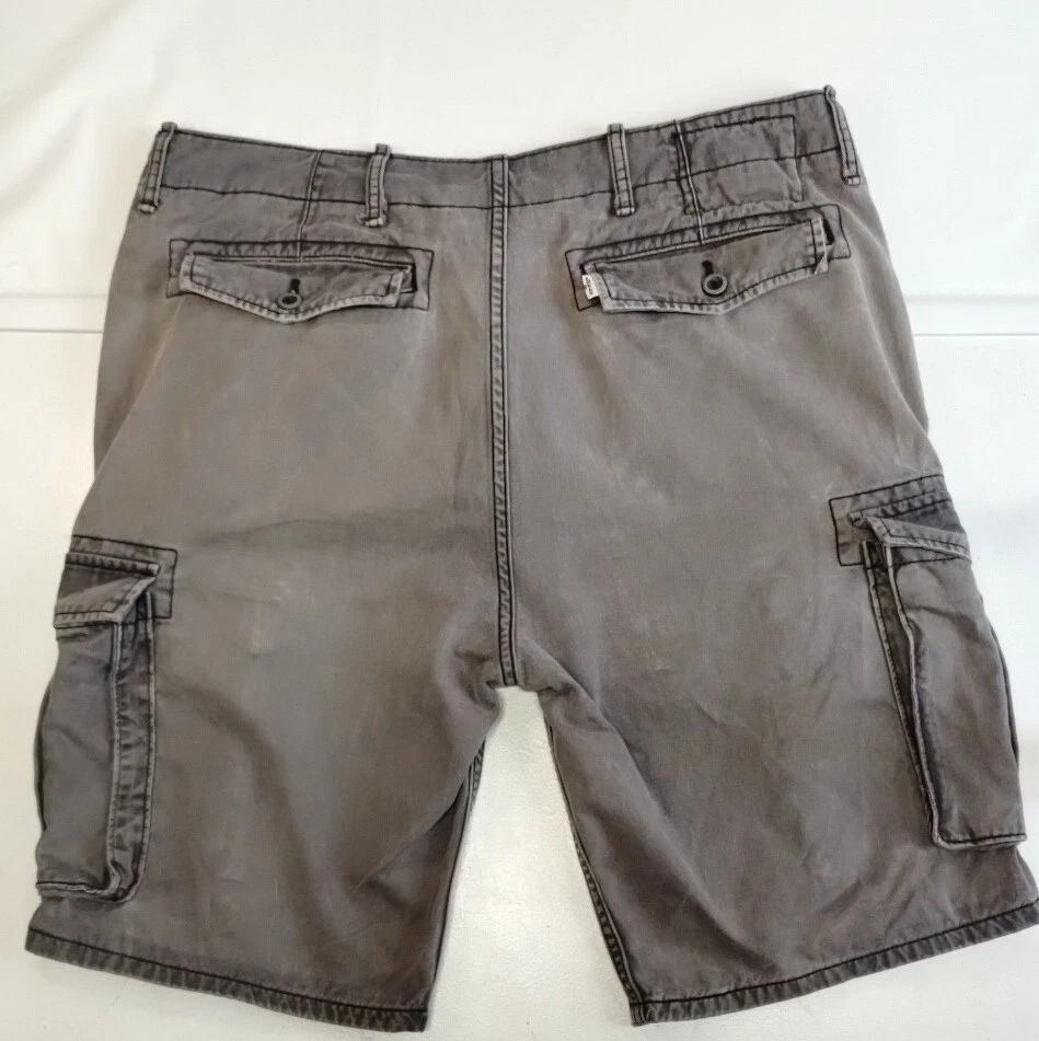 These do have a couple flaws so please look at all the pictures. They would be great for work or when you may end up getting messy.Elevate your summer wardrobe with these stylish men's cargo shorts from Levi's. Designed for the modern man, these shorts are perfect for casual outings and weekend adventures. With a size of 34, they offer a comfortable fit for all body types. Crafted from high-quality materials, these shorts are built to last. The cargo style adds a touch of ruggedness to your look, while the regular size type offers a classic fit. Whether you're running errands or exploring the great outdoors, these shorts are a versatile addition to your wardrobe.