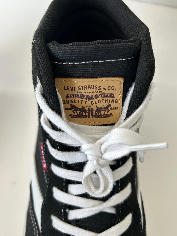 Levi's Men's Size 10.5 - Lance Mid CT CVS UL - Black & White, High Top, Lace up, Sneaker Athletic Shoes Athleisure Sports Ware Pre-Owned in Good Condition - Please see P ictures for D etails Great Gift Idea!