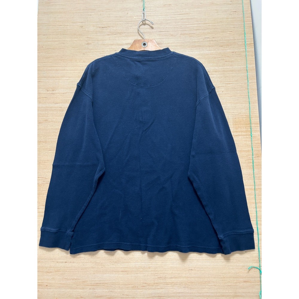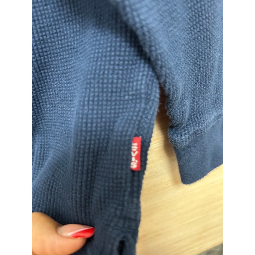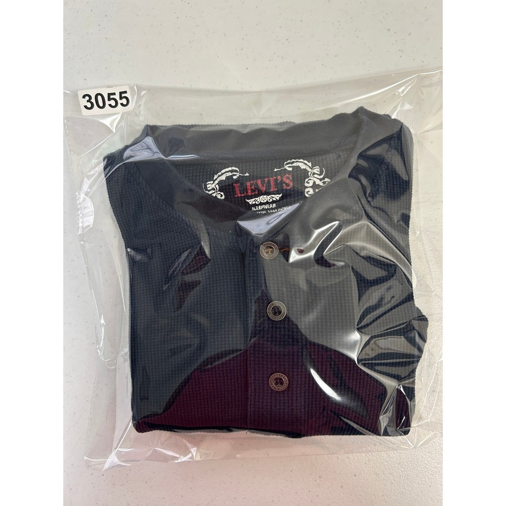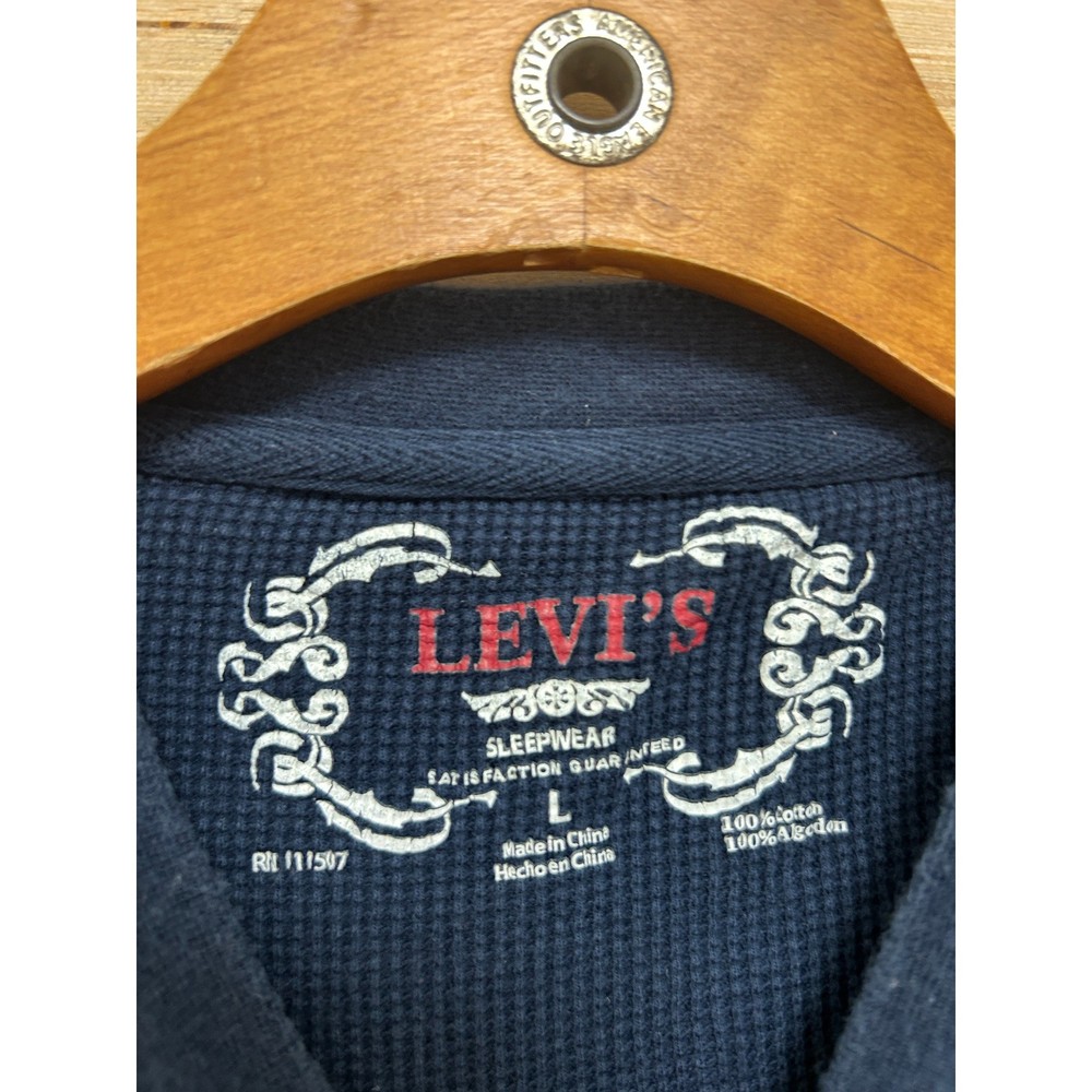 Levi's long sleeve henley top crafted from a comfortable 100% cotton waffle knit thermal fabric. This navy blue sleepwear piece features a classic three-button placket, ribbed cuffs, and the iconic red tab logo at the side seam. The textured waffle weave provides warmth and breathability, making it an ideal choice for lounging or layering during cooler months. Brand: Levi's Style: Henley Sleeve Length: Long Sleeve Material: 100% Cotton Fabric Type: Waffle Knit / Thermal Color: Navy Blue Pattern: Solid Neckline: Round with Button Placket Closure: Pullover Fit: Regular Features: Red Tab Logo, Ribbed Cuffs Keywords: Gorpcore, Workwear, Cabin, Minimalist, Loungewear, Pajamas, Rugged, Classic, Basic, Winter Layering, Americana, Heritage