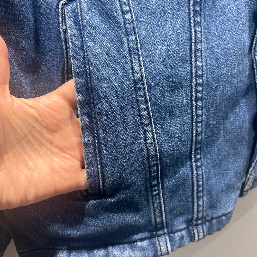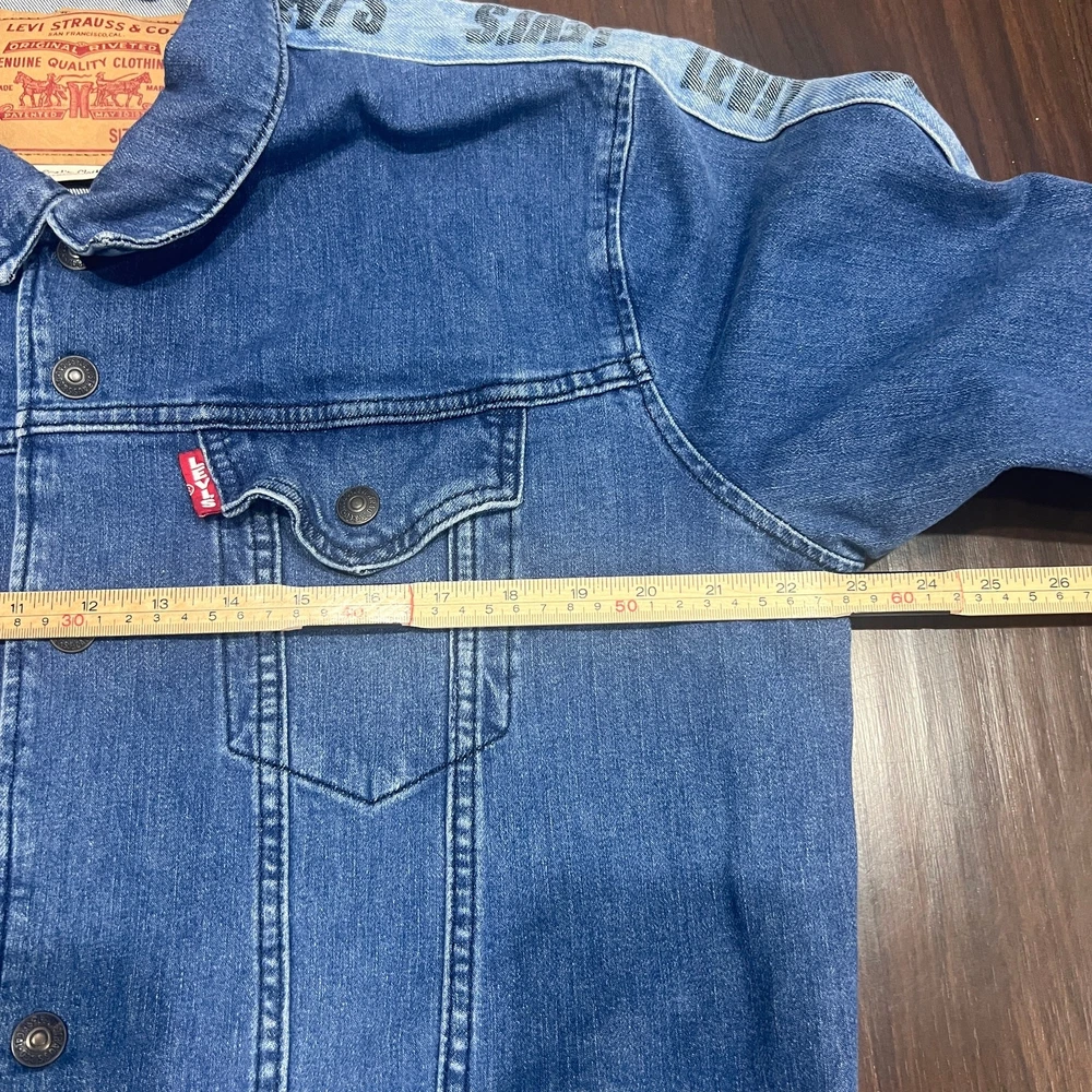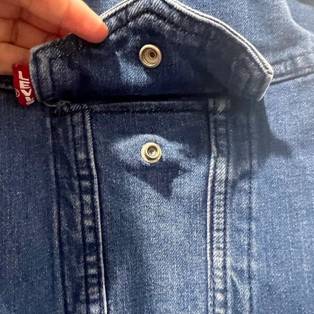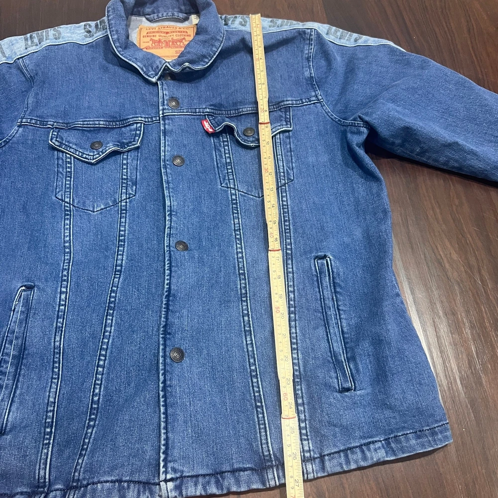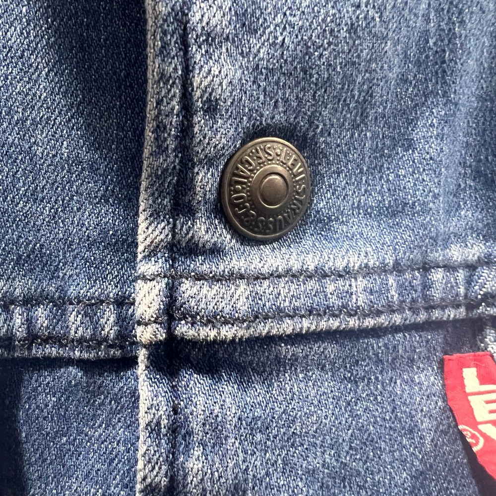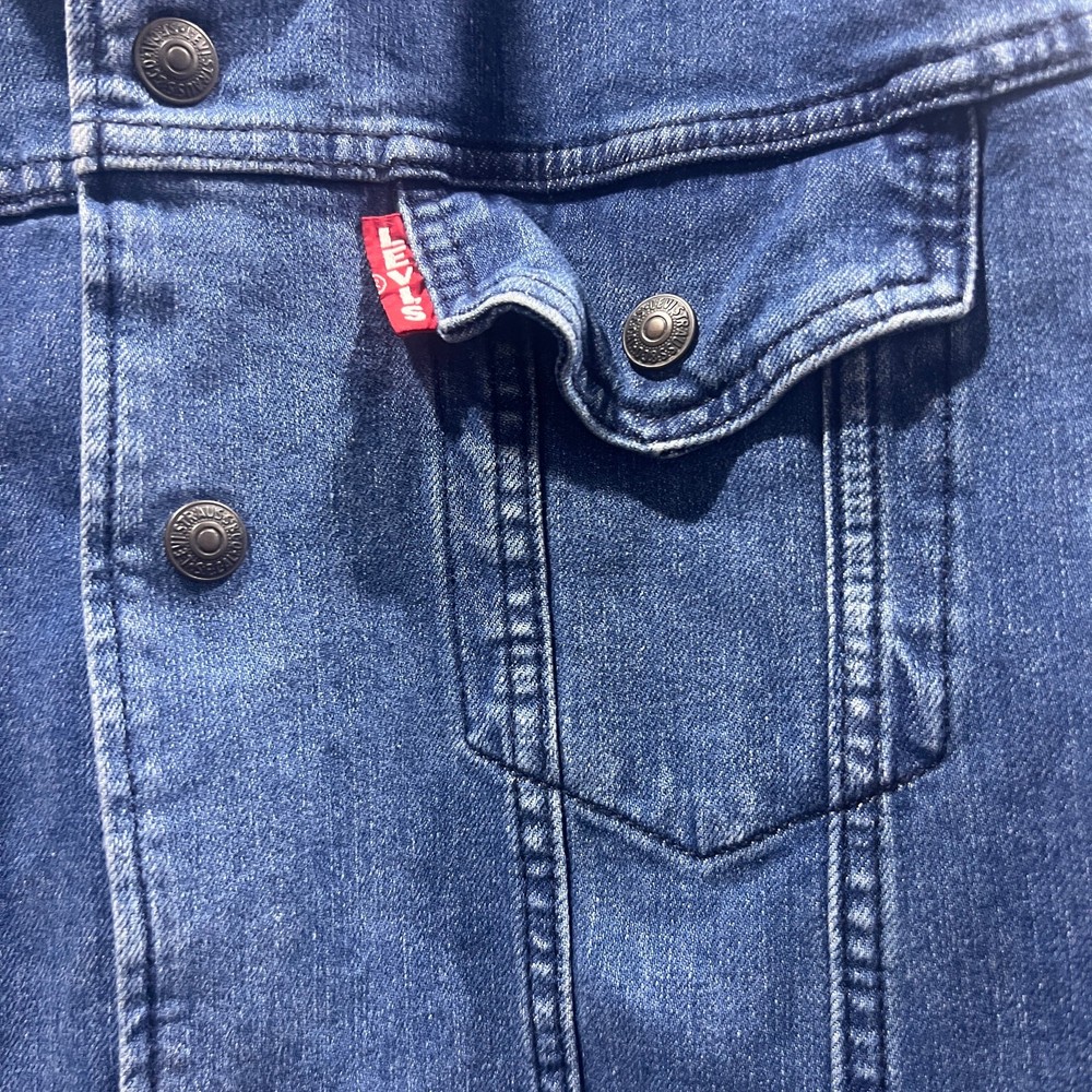 Levis Premium Denim Jacket Men’s Trucker Snap Size L Great condition No stains or holes It does say irregular in the inside