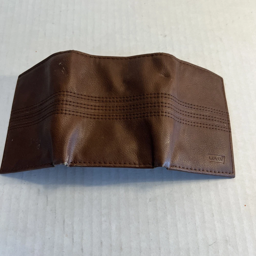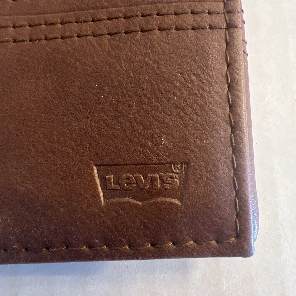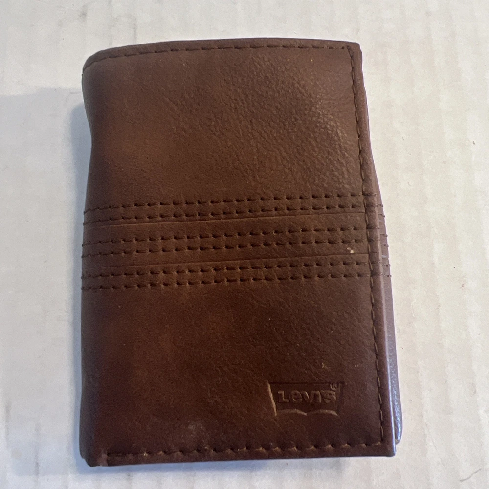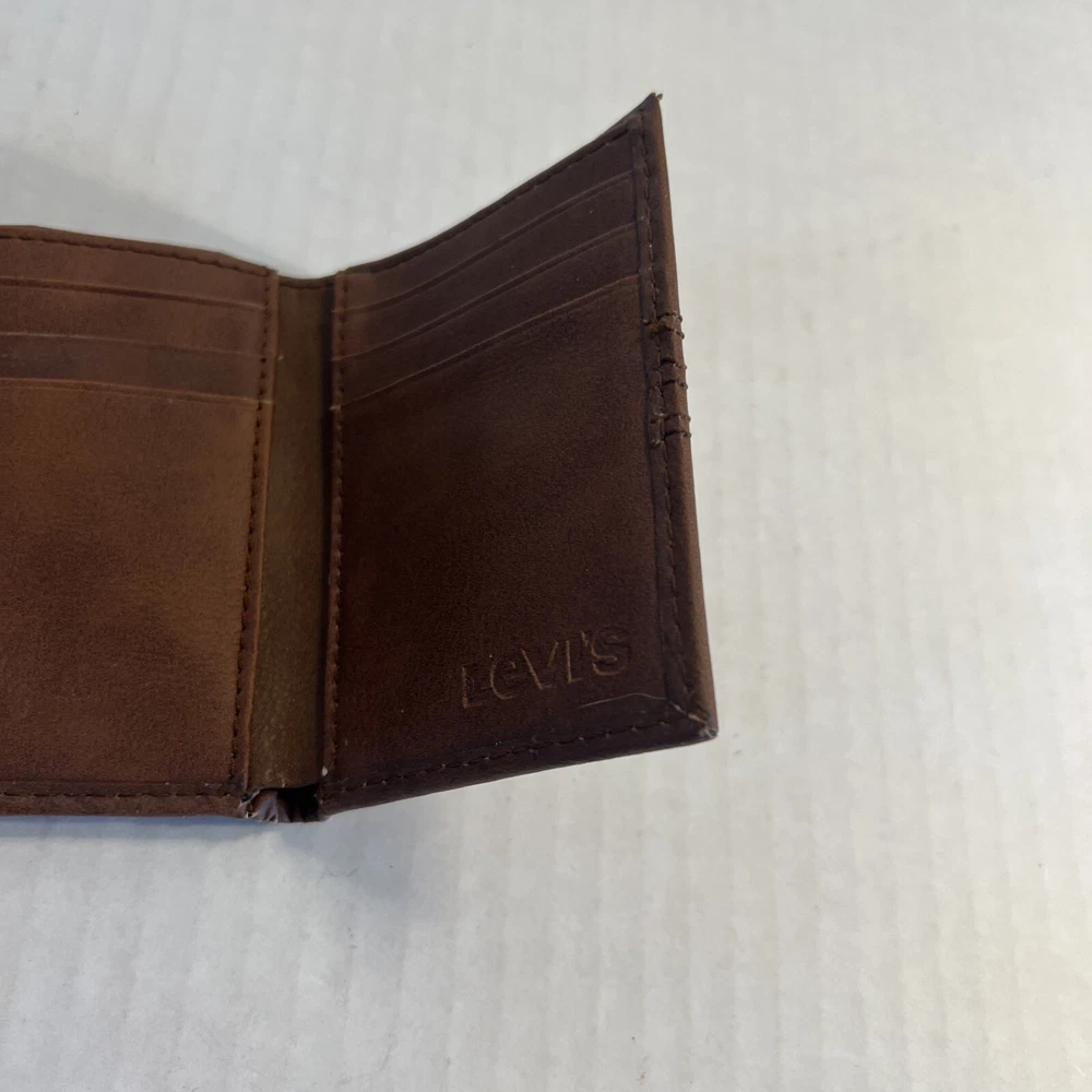 Material:LeatherDepartment:MenBrand:Levi'sVintage:NoType:WalletFeatures:Credit Card, RFID Blocking, Photo HolderHandmade:NoUPC:026217255767gtin13:026217255767Personalize:NoCountry/Region of Manufacture:IndiaPattern:SolidColor:BrownStyle:Trifold