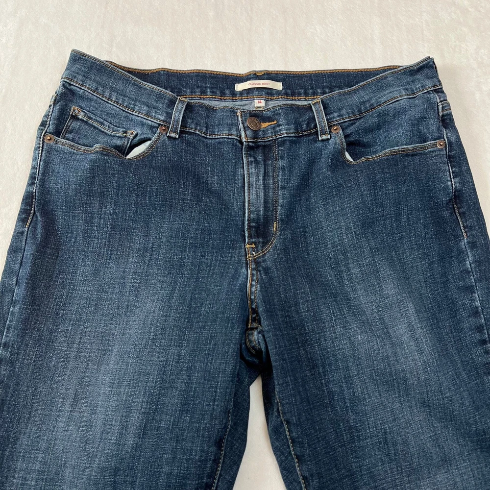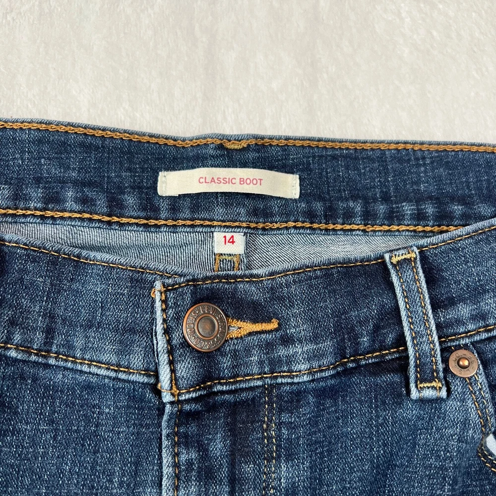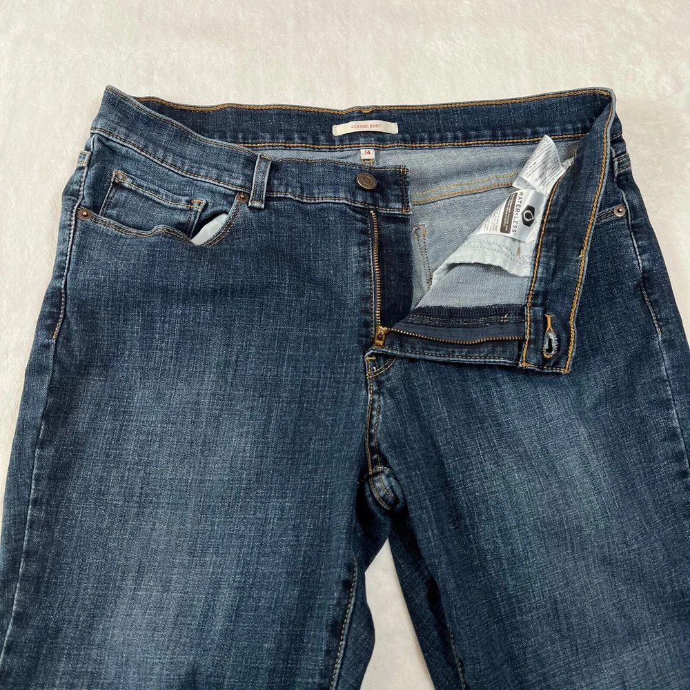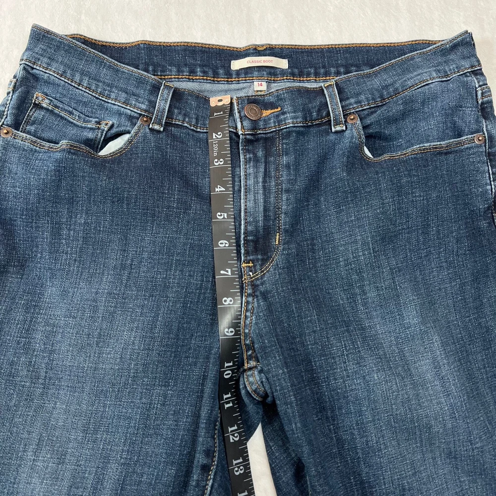 Levi's Mid Rise Classic Boot Cut Jeans Size 14 Western Rodeo Cowgirl Casual CONDITION: Pre-Owned. Excellent Used Condition. FLAWS/ALTERATIONS: No flaws. COLOR: Blue SIZE: Women’s Size 14 DETAILS: Button closure, zipper fly 5 pocket design Belt loops Bootcut Mid rise Stretch MEASUREMENTS: Waist: 16.5" Rise: 10" Inseam: 31" **All measurements are approximate and are taken flat** MATERIAL: **NO MATERIAL TAG** Bundle 2 OR MORE items to save more! Reasonable offers are welcomed! TAGS: Casual Comfy All Seasons Fall Winter Spring Summer Travel Vacation Contemporary Minimalist Neutral Rodeo Cowboy Cowgirl Western Southwestern Trendy 90's Y2K 2000's Classic Staple