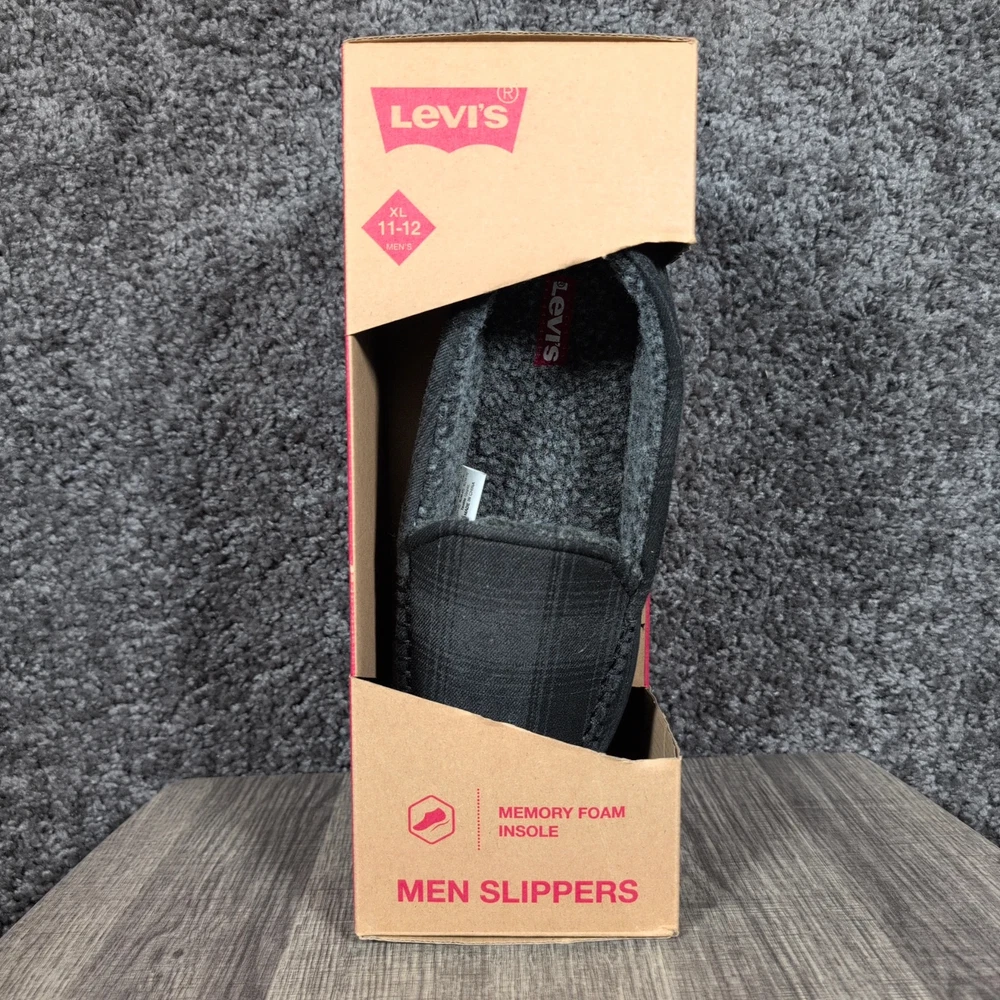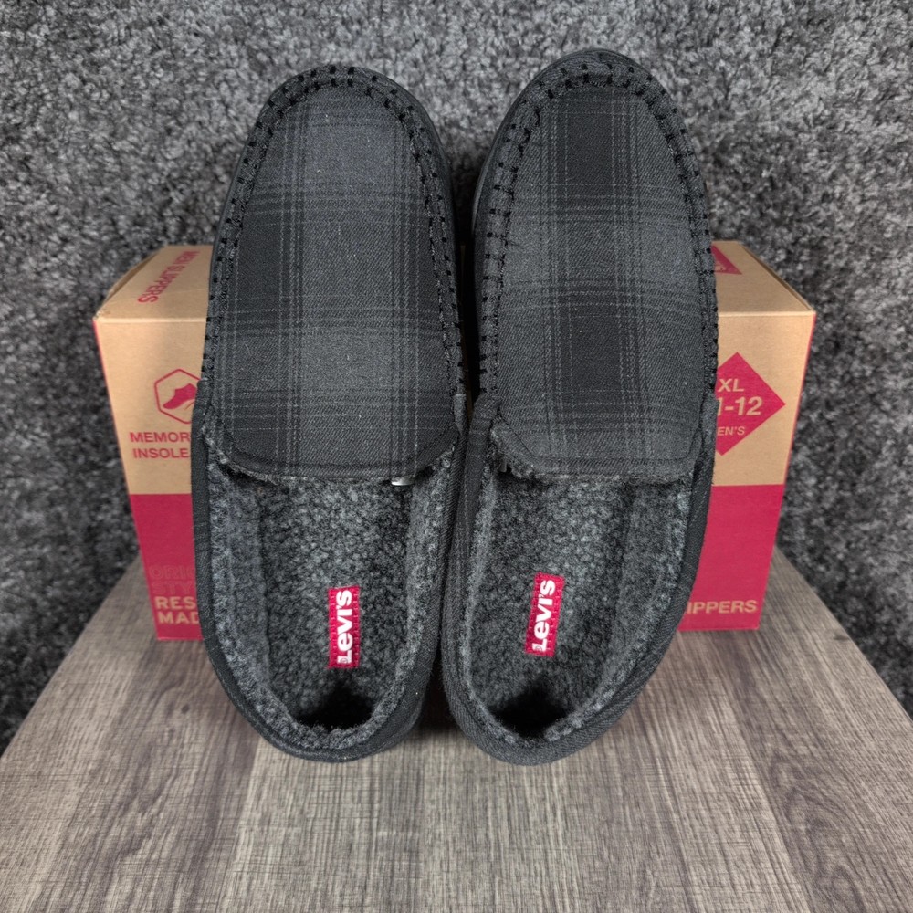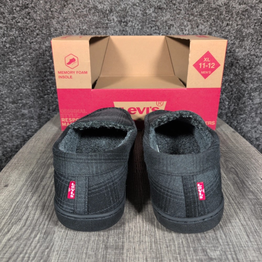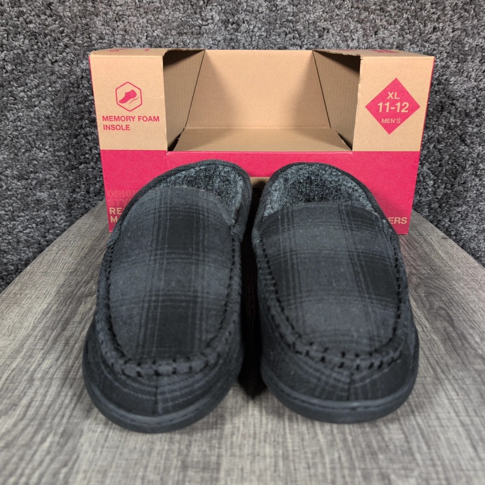 WindRiver Harper Slippers Mens Size 12 Black Plaid Mule Faux Fur House Shoes