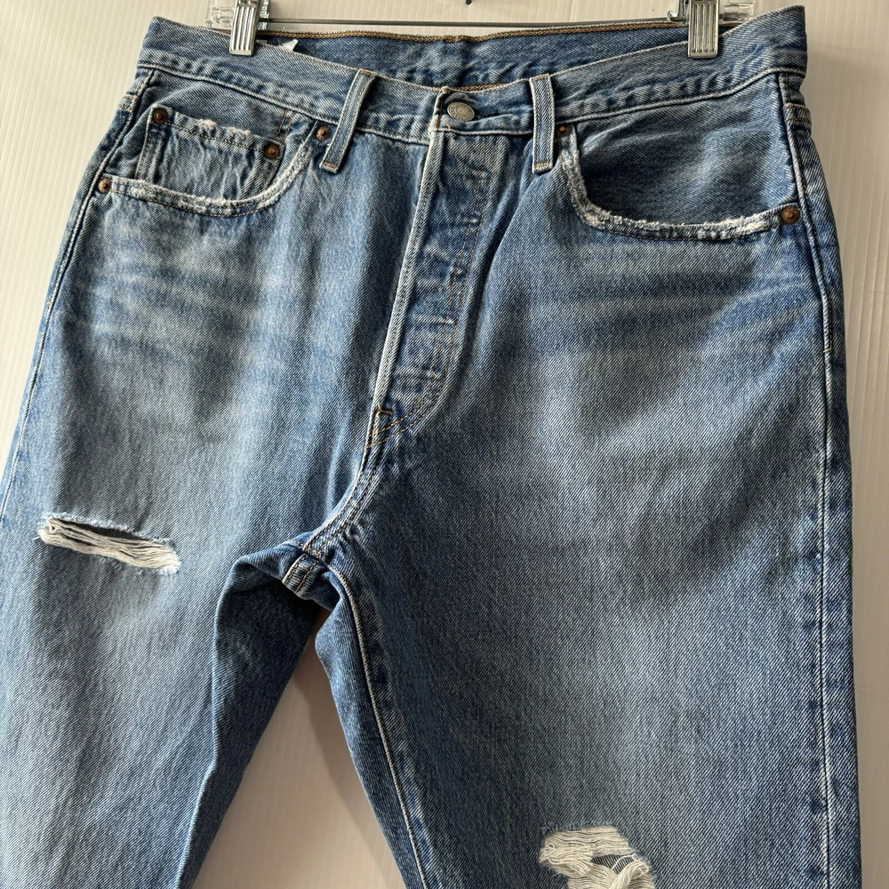 Levis Premium Jeans 501 Mens W31 L 30 Distroyed Medium Wash Button Fly Please see all photos Used good condition Sz 31X30 Blue Note: please take into account the measurements in the photos, they are approximations, you must be sure of your sizes. Please view all photos carefully before making any purchase. Shipments are made the same or next day on business days. Any questions please ask