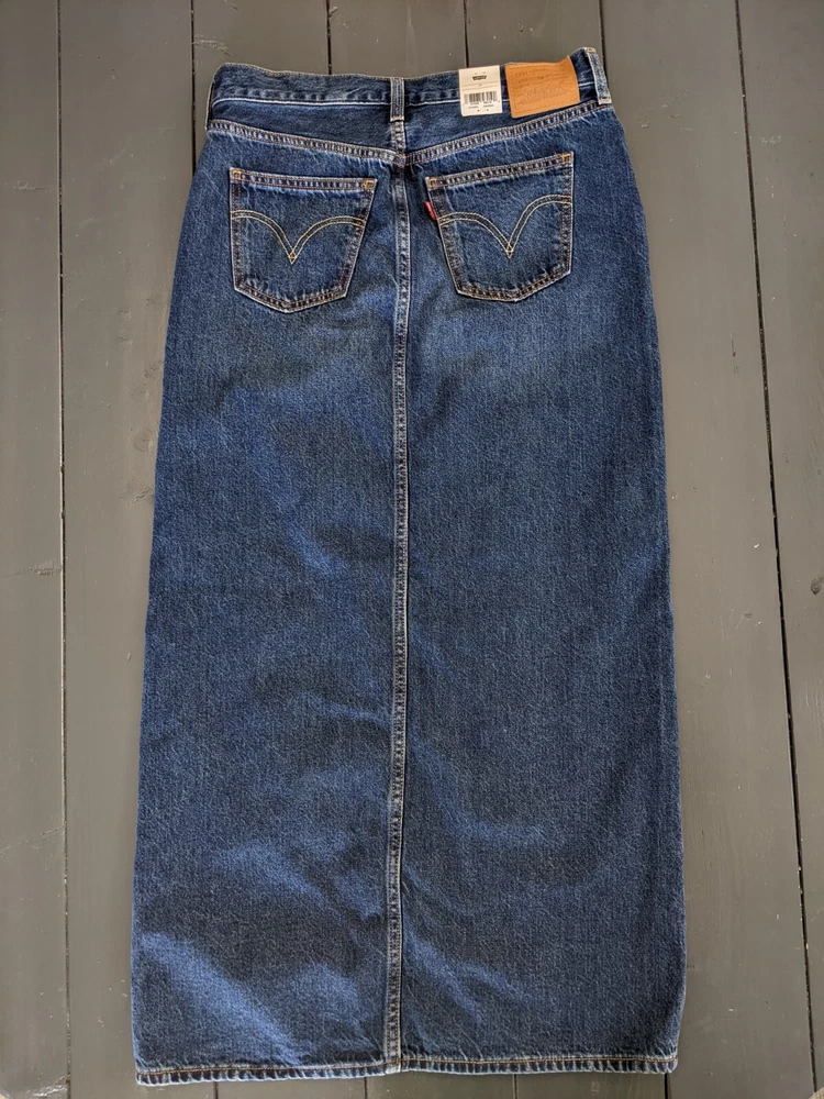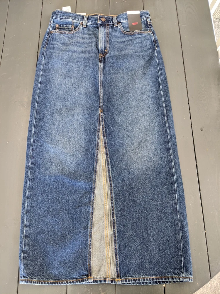 Levi's Premium Maxi Skirt Women's 27 Blue Jean Denim Ankle Column Front Slit NWT. Condition is New with tags. Shipped with USPS Ground Advantage.