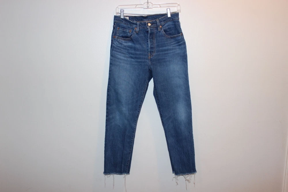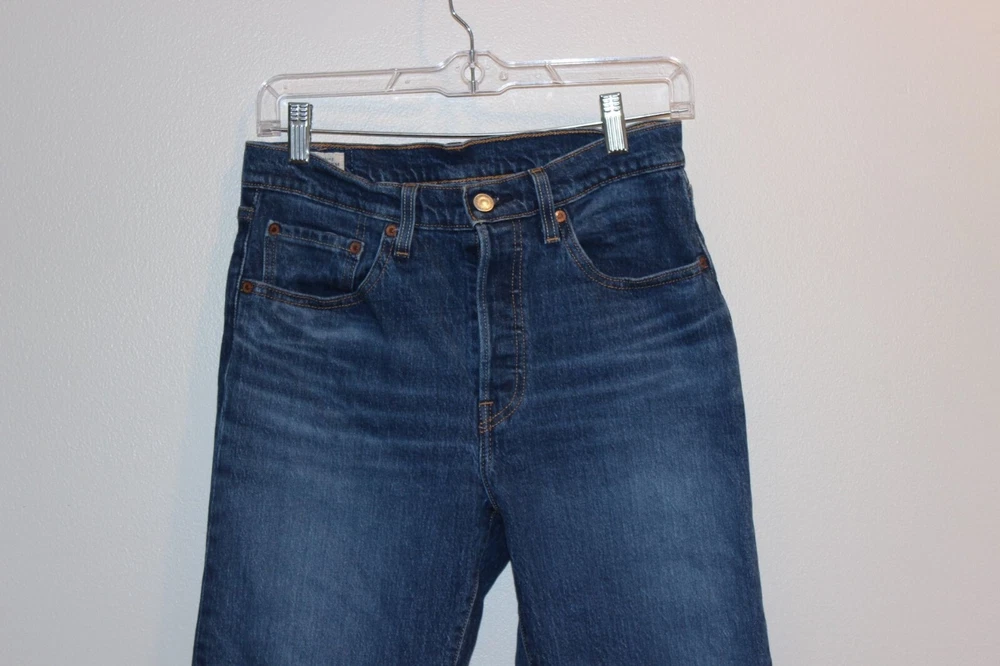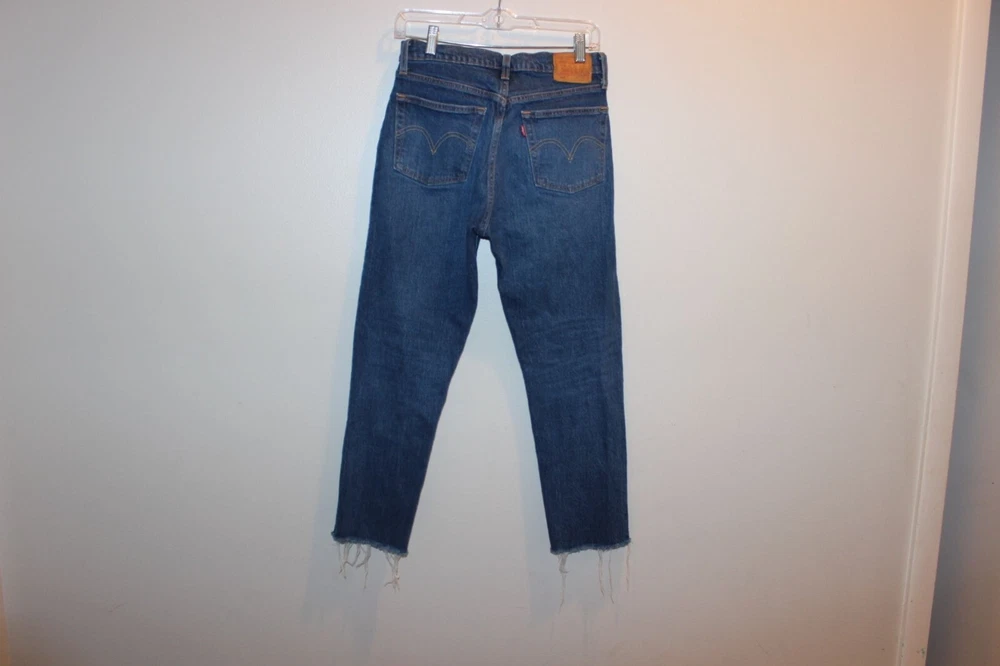 Crafted with a high-waisted fit, these Levi's jeans feature a button-fly closure and distressed hems. Designed for a stylish, modern look. • High-waisted fit • Button-fly closure • Distressed hem design • Classic five-pocket style • Blue denim material Size : 27 x26 Great Preowned Conditions, No Flaws.