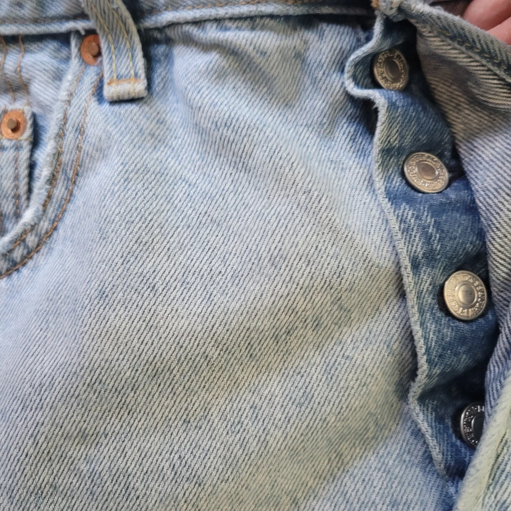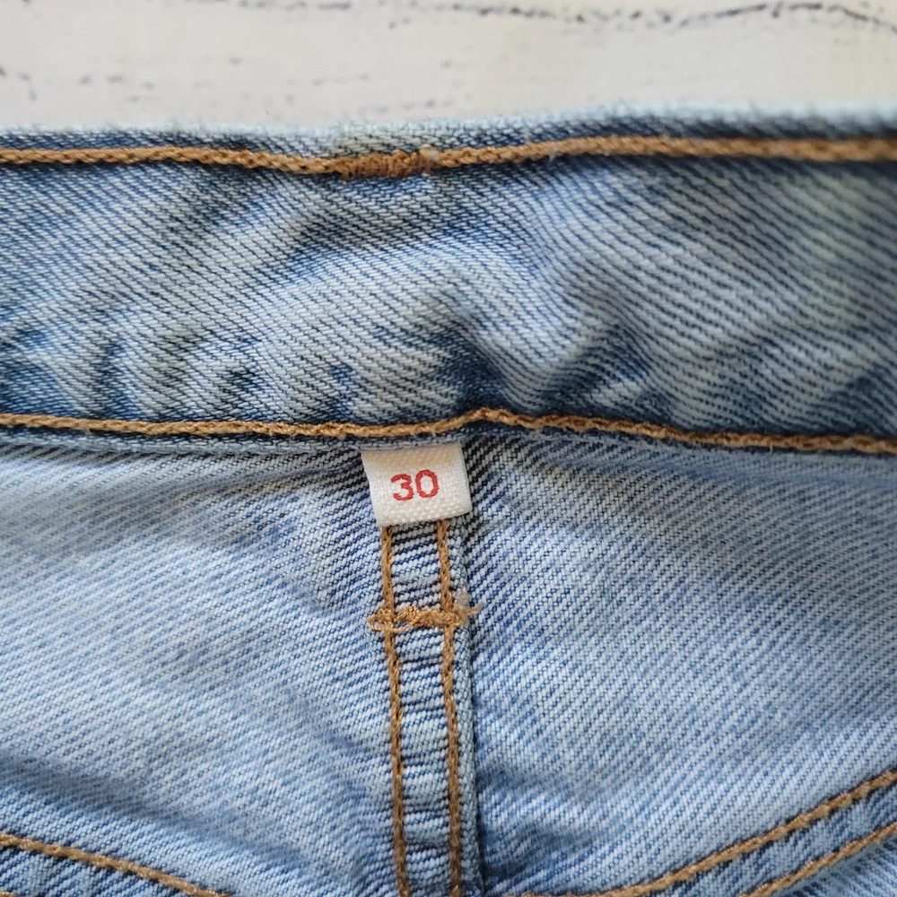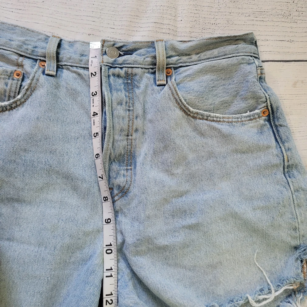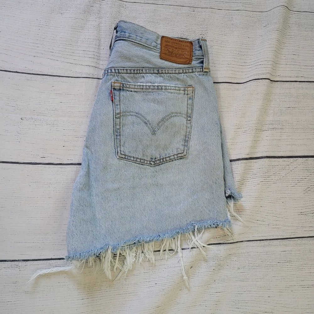 Levi's Size 30 High Waisted Button Fly Light Wash Cut Off Jeans Summer Beach Button fly closure 5 pocket design Belt loops Fraying cut off hemline Longer length with classic Levi's look -Materials: 100% cotton -Excellent, pre-owned condition. No visible stains, flaws or tears. No to minimal signs of previous wear. Measurements included in photos - please inquire if more are needed. All offers considered - make one today! Approximate Measurements: Waist: 30" Rise: 10" Inseam: 4.5" Style Profile: edgy distressed punk rocker concert essentials capsule wardrobe basics