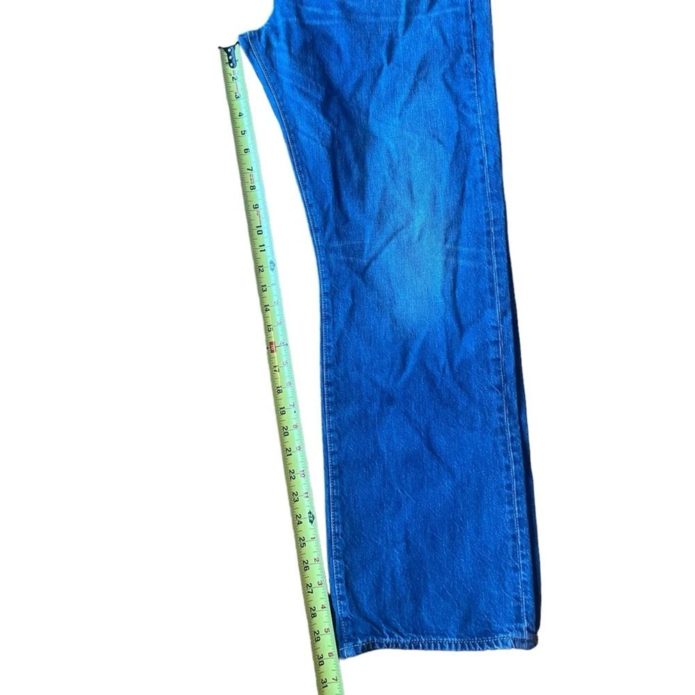 Levis Straight Leg Jeans Mens Size 40 32 inch inseam Excellent condition Some wear to the back label but denim is in excellent condition Button up enclosure Front and back pockets See photos for flat lay Measurements