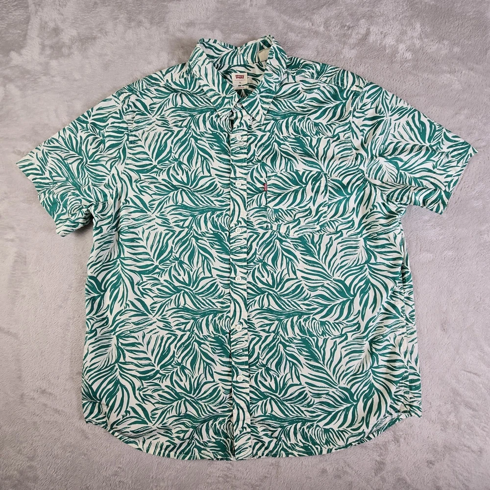 Levis Strauss & Co Hawaiian Shirt Button Mens XL Green Short Sleeve Floral PLEASE SEE PHOTOS FOR EXACT DETAILS AND CONDITION OF THE ITEM. ALL MEASUREMENTS ARE TAKEN FLAT. PLEASE COMPARE MEASUREMENTS OF SIMILAR ITEM THAT YOU OWN TO ENSURE CORRECT FIT. CHEST: 25" LENGTH: 29.5" SLEEVE LENGTH: SHORT SLEEVE CONDITION: VERY GOOD SHIPPING: U.S. SHIPPING IS USPS GROUND ADVANTAGE. INTERNATIONAL SHIPPING IS Ebay GLOBAL SHIPPING HANDLING TIME: 2 Full business days. Usually ships next day after purchase excluding weekends or holidays. FEEDBACK: Please leave feedback once you receive the item. If there is an issue with the item, please contact me and let me correct the issue before leaving feedba