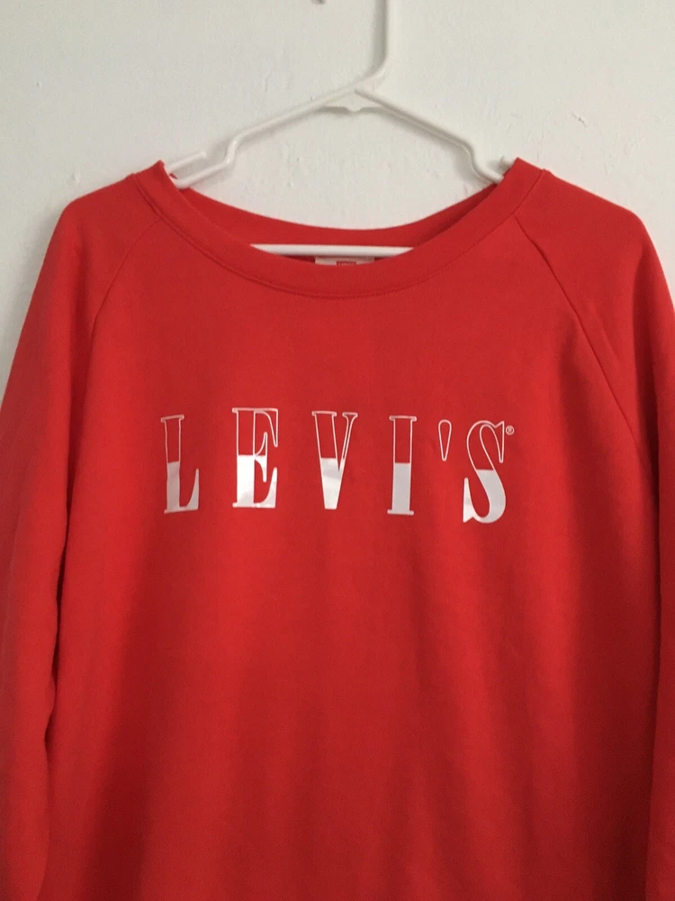 Levi's Sweatshirt Pullover Logo Knit Red Basic Plus Size Long Sleeves see pictures for more details all Pictures are size 2X Measurements 3X shoulder to hem 29 inches sleeve length 29 inches pit to pit 27 inches