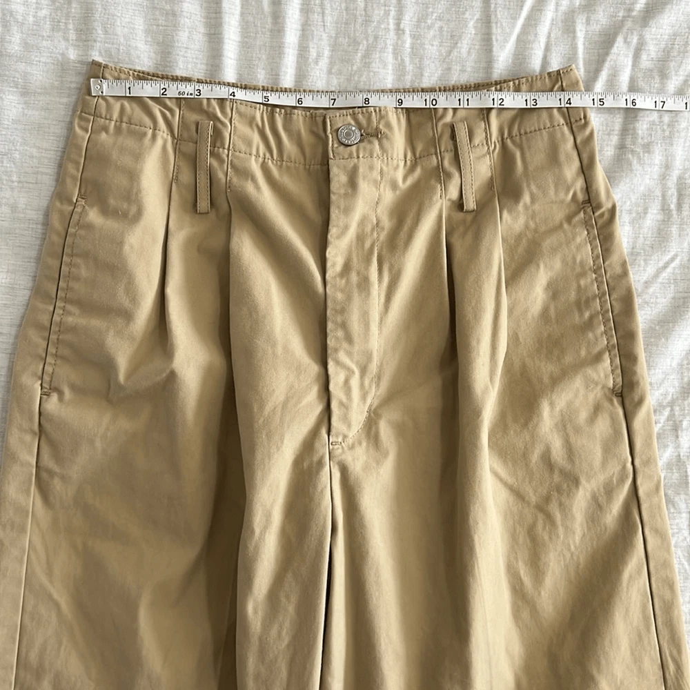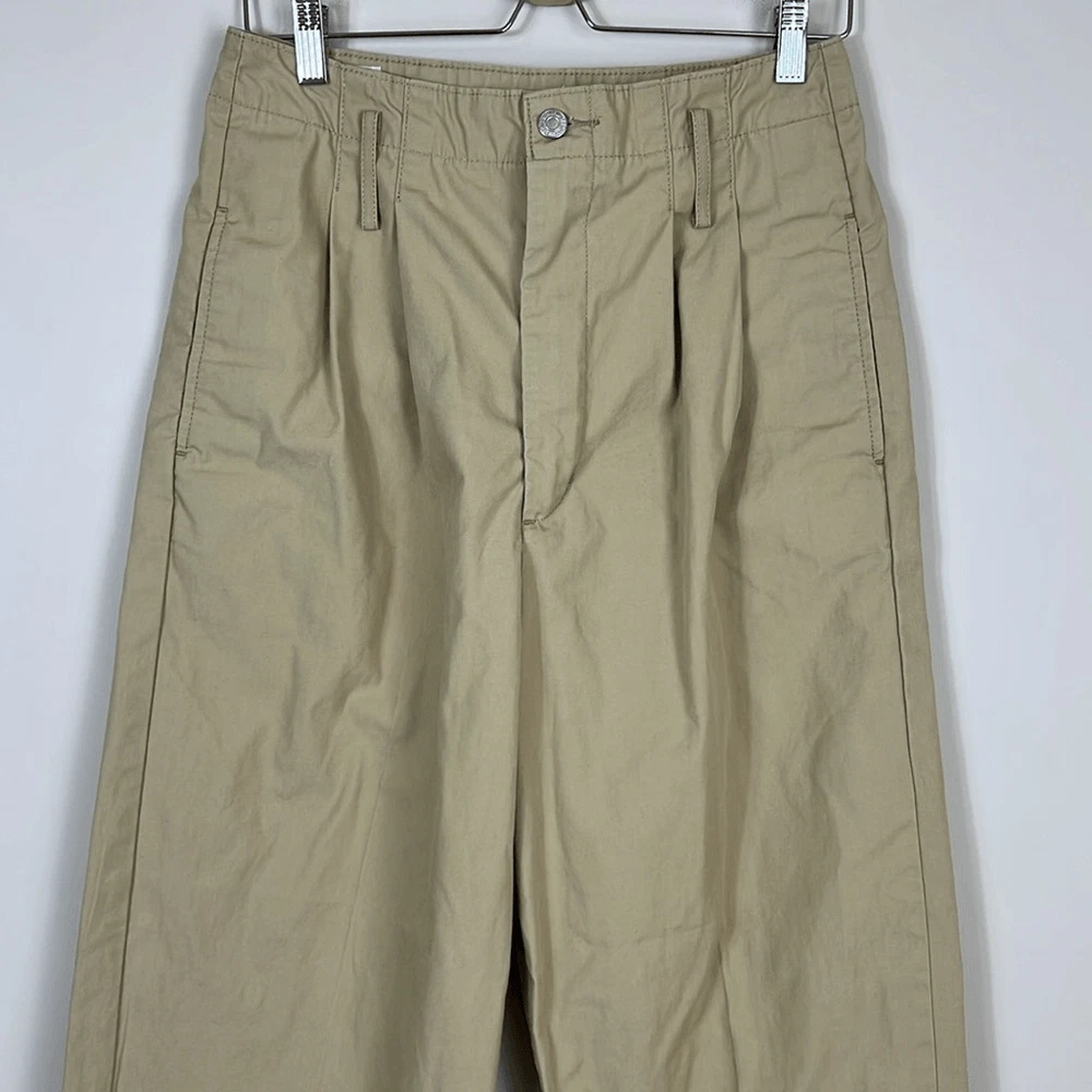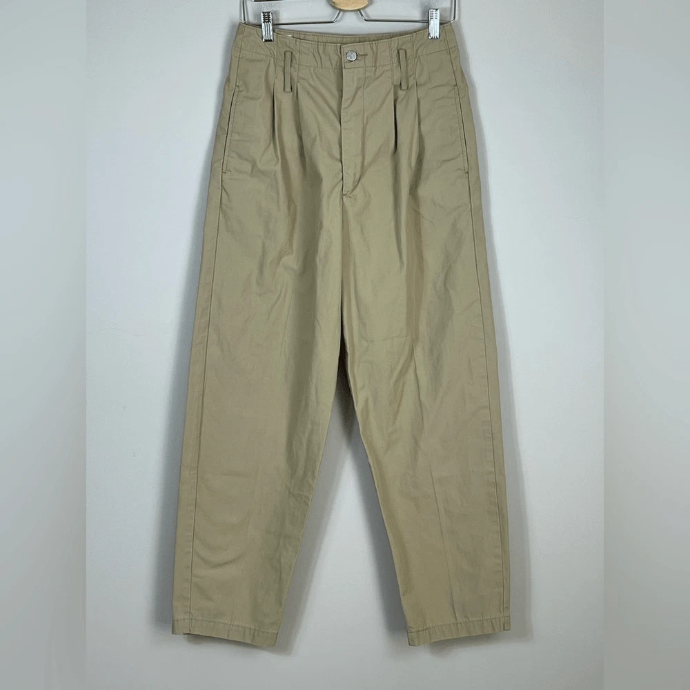 Totally timeless in a forever classic design, these essential pants from Levi’s are featured in a high-rise, tapered silhouette with exaggerated pleating at top and defined waist with belt loops. - Fabric: No stretch Twill: 60% Cotton, 40% Polyester - Size and Fit: Loose through your hip and thigh; super high rise Condition: Excellent used. No flaws. Belt is NOT attached as in stock photos. Belt is ugly/cheap looking IMO. Size: 29 Rise: 13.5” Inseam: 29.5” approximate