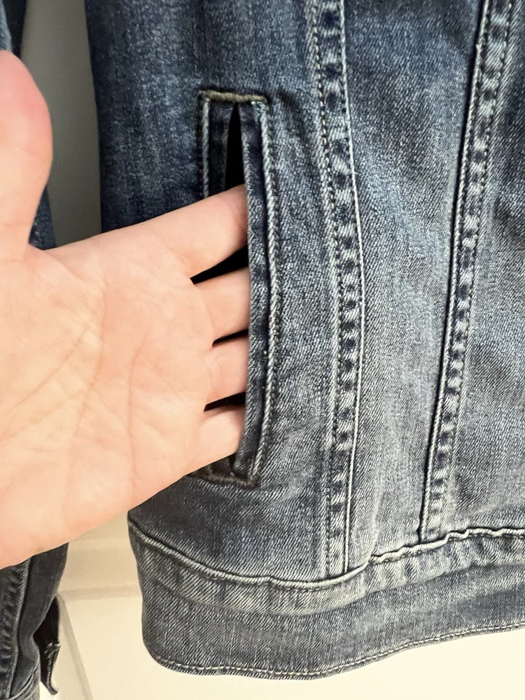 In good used condition. No holes or stains. Has the distressed look. Please see all photos. FOLLOW FOR MORE 🙂