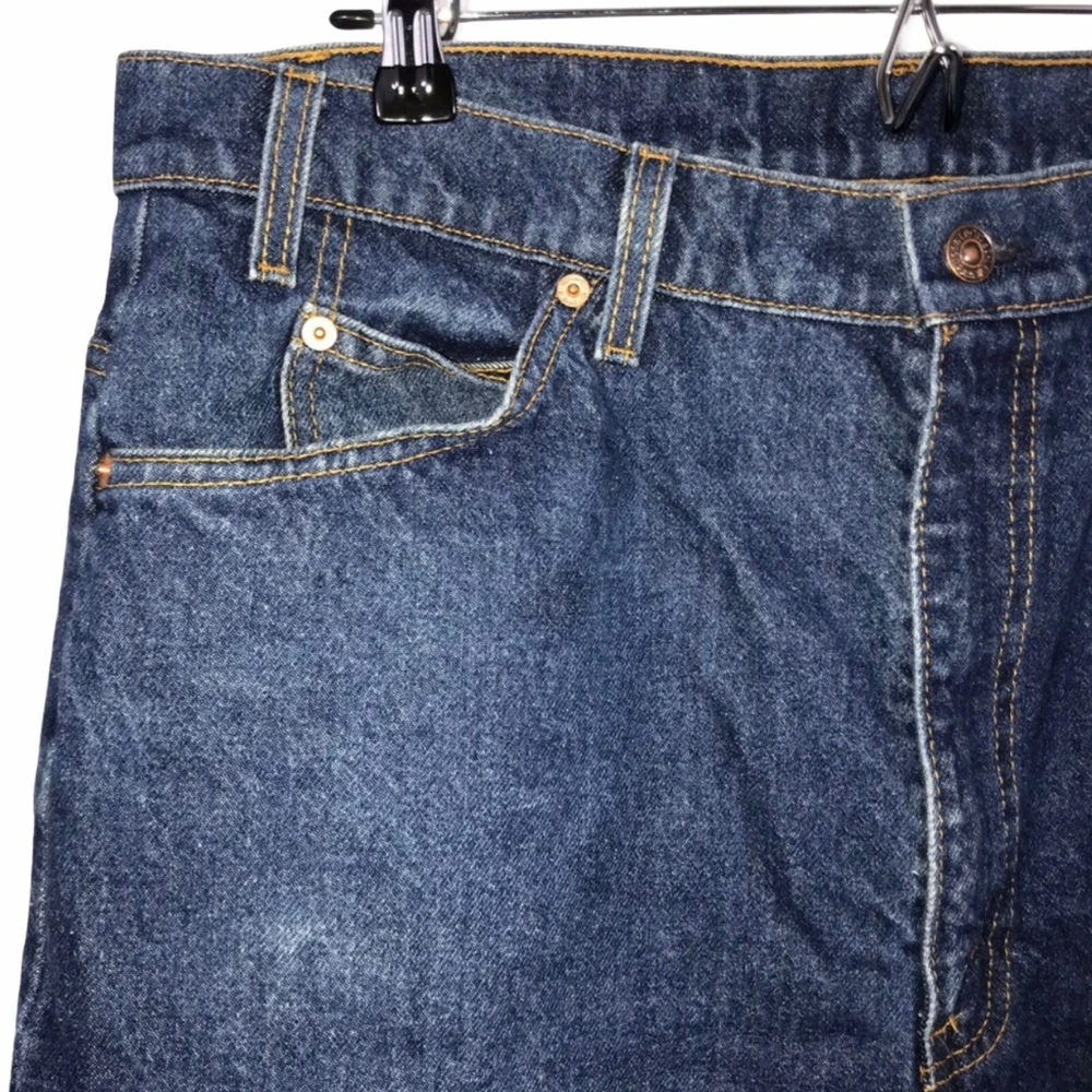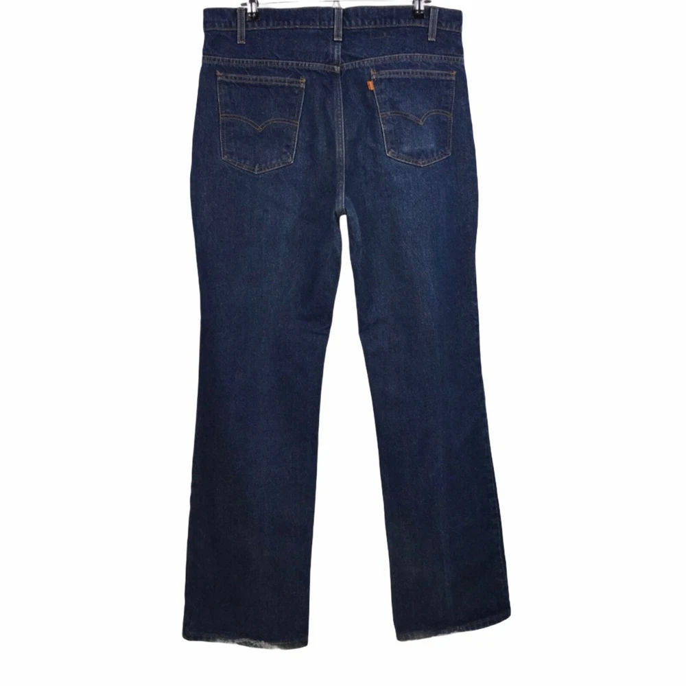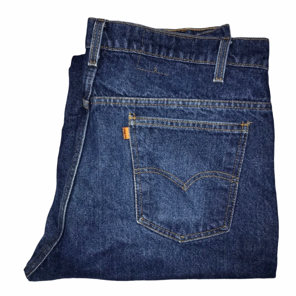 Brand: Levi's Type: Jeans Style: Straight Leg Line: Orange Tab Color: Blue Wash: Medium Features: 5 Pocket, Embroidered Closure: Zipper Fly Material: Denim, 100% Cotton Size: 40 Condition: Great, minor fading, wear at the hems Laundering: Machine Wash Other: Vintage, 1990's, 90's, Made in the USA Length: 45" Waist: 18.5" Hips: 22" Front Rise: 13" Inseam: Tag - 34", Actual - 33.5" Width at hem of leg: 9.5" Measurements are approximate. Orders are shipped within 1-2 business days. 0121051402