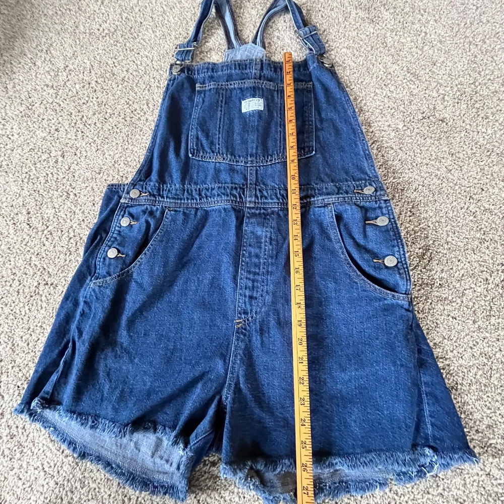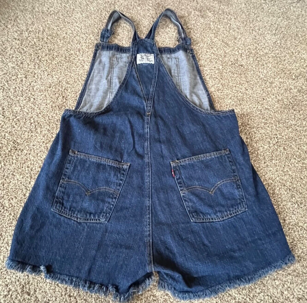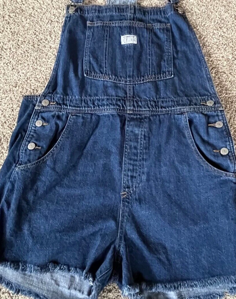 Levi's Vintage Style Denim Medium Wash Shortalls Shorts Overalls Women's xl