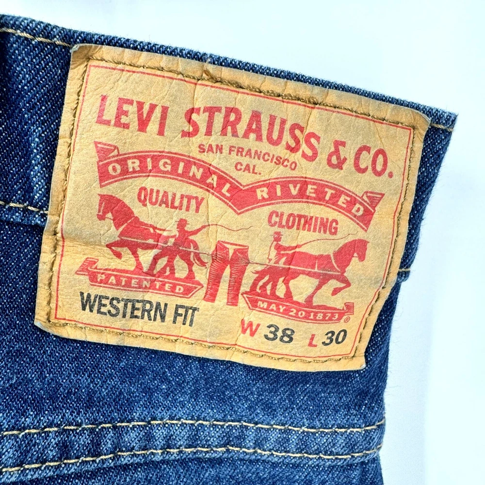 Levi's Western Fit Jeans Mens 38x30 Straight Leg Blue Denim Dark Wash Very good condition, see all pictures for views. •Waist: 38" •Inseam: 29" •Rise: 12" Thank you for your purchase!