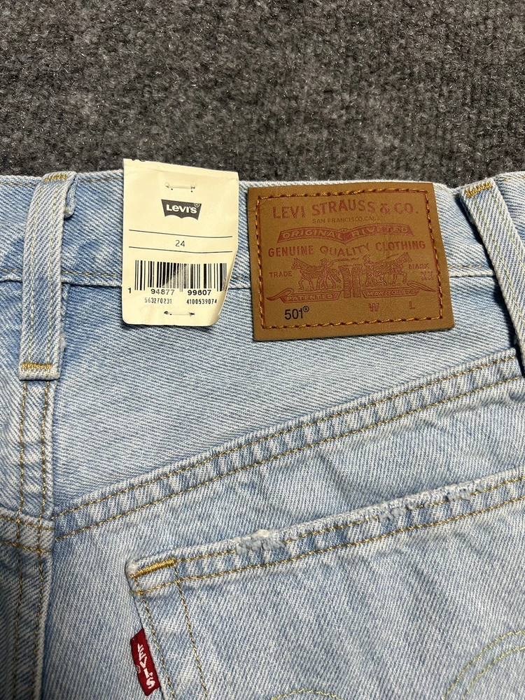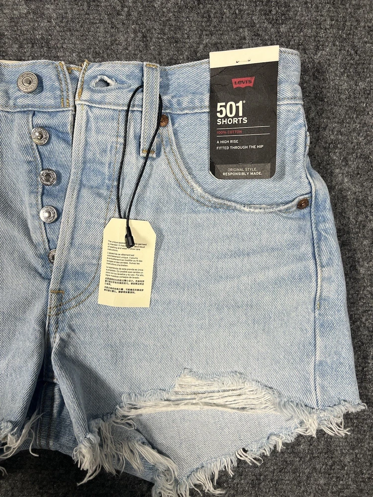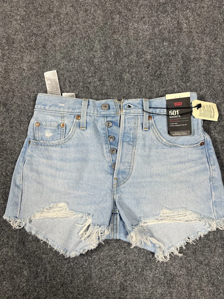Elevate your summer wardrobe with these stylish Levi's Women's Blue Denim Cut-Off Shorts. Perfect for any casual day out, these shorts are made from high-quality denim fabric that offers comfort and durability. The shorts are designed with a button closure and a classic Levi's logo patch at the back for a chic look. The shorts come in a light wash color, with a solid pattern that adds to their appeal. They are available in size 24 and have a regular fit. The Levi's Women's Blue Denim Cut-Off Shorts are perfect for any fashion-forward woman who wants to add a touch of style to her summer wardrobe.