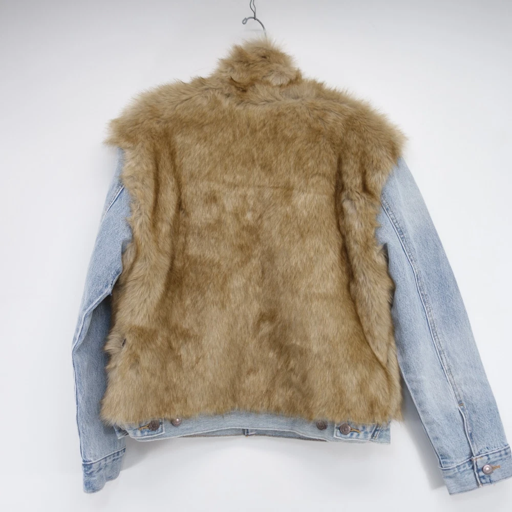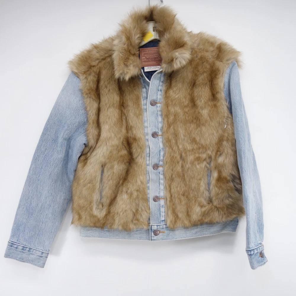 New Womens Levi's Oversized Fur Stonewash Button Up Jean Denim Trucker Jacket Size: Small This jacket has a stain due to warehouse storage and has been professionally repaired at the pocket/sleeve, please see photos for details. A cozy and glamorous rendition of our classic Trucker Jacket. Levi’s® iconic, instantly recognizable jean jacket has been a symbol of individual self-expression for decades. This one in particular features faux fur at the body and collar for a one-of-kind style and cozy feel. The original jean jacket since 1967 A blank canvas for self-expression that can be passed down for generations Levi’s® branded metal buttons and tapered “V” stitches make it instantly recognizable This iconic essential truly looks good on everyone, even when sized up or down Gets better over time from natural wear with fading, stains and holes Retails for $500, Get it here for a fraction of the price! XL159-MNOV Measurements: Armpit to Armpit: 24.5" Top to Bottom: 32" Terms Of Sale We ship Worldwide, 5 days a week. A purchase on Friday after 3pm, sometimes will not ship till Monday. Shipping In the continental USA, items usually arrive within 4 business days, please allow more time for international shipping. Items may be combined when paid together on the same invoice. Additional shipping costs are as follows: $3.45 for each additional item IN THE USA. Outside of the USA – $9.99 to $35.00 depending on the item, please message us for rates ahead before purchasing International Shipping: Import duties, taxes and charges are not included in the item price or shipping charges. These charges are the buyer's responsibility. Please check with your country's customs office to determine what these additional costs will be prior to bid or purchase. Guarantee: Please leave us 5 stars, if you feel we have fallen short, do not hesitate to message us so we may have a chance to make it right.