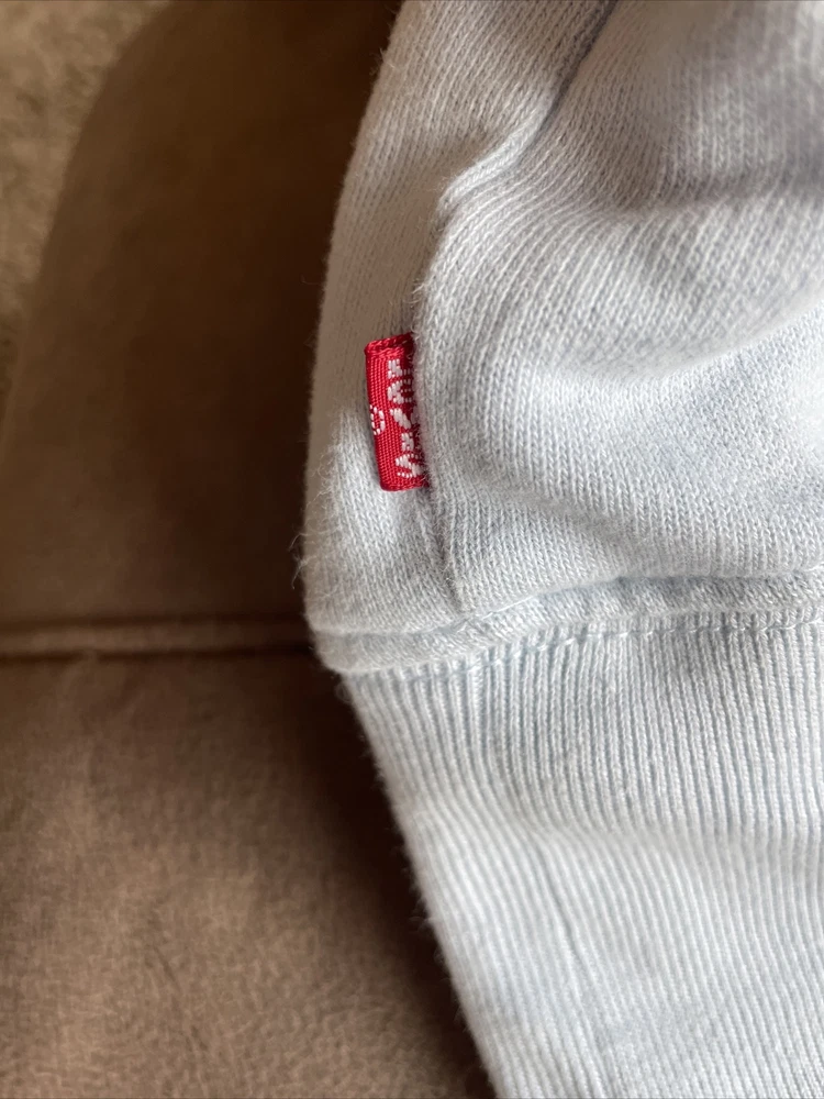 Levi's Women's Retro Graphic Hoodie Size Small Light Blue NWT. Chest is 42”, length is 26”, and sleeves are 27.5” from hood to wrist.