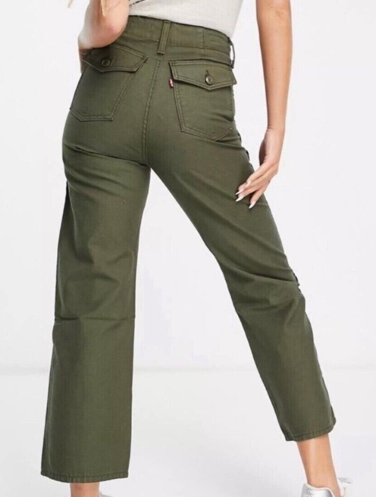 New with Tags Levi’s Women’s Ribcage Straight Utility Wide Leg style Size 30x29 Actual waist: 30.5" Actual inseam: 28.5" Rise: 12.5" Olive green 100% cotton Retail price $108 Four large pockets - slash pockets on front and buttoned flap pockets on back Button and zipper closure Combined shipping available Non-smoking environment Copyright @MyCarousel.