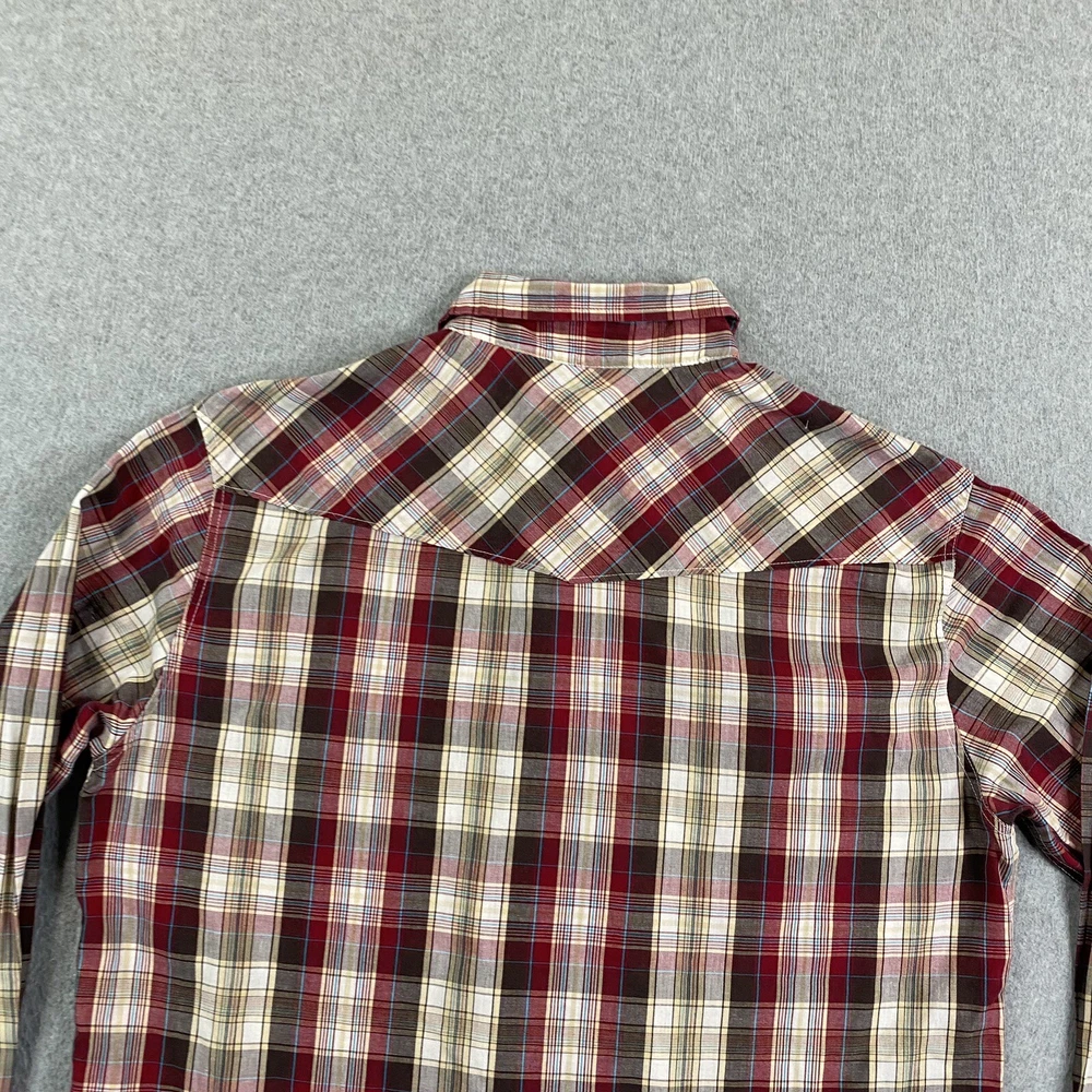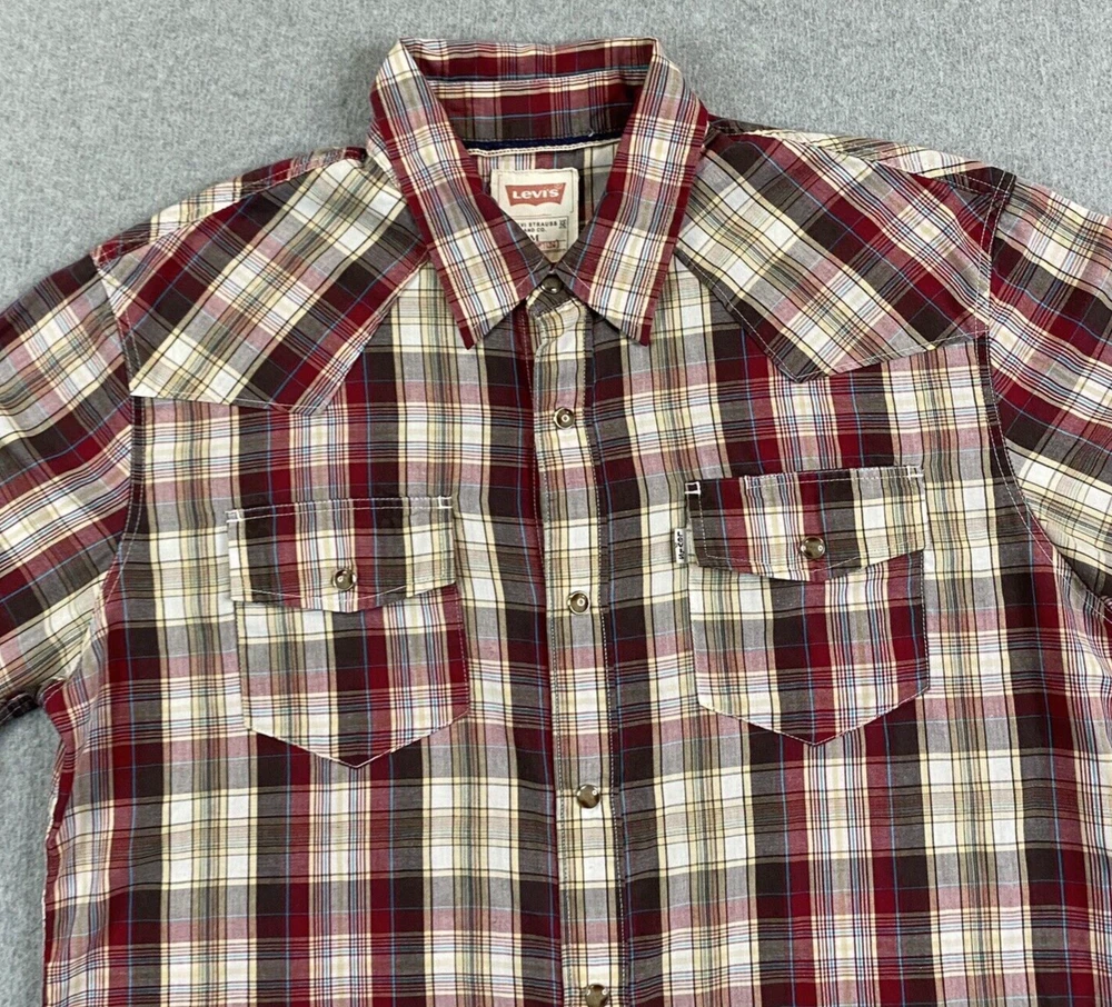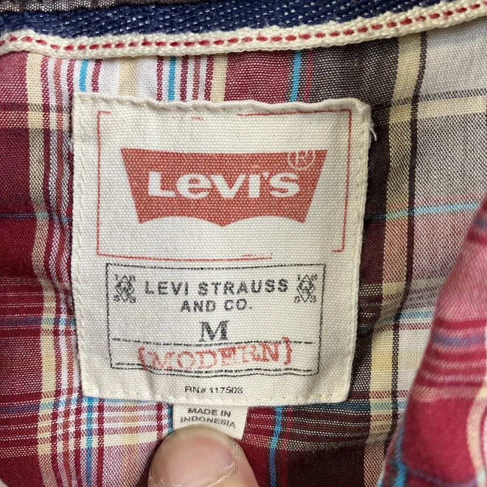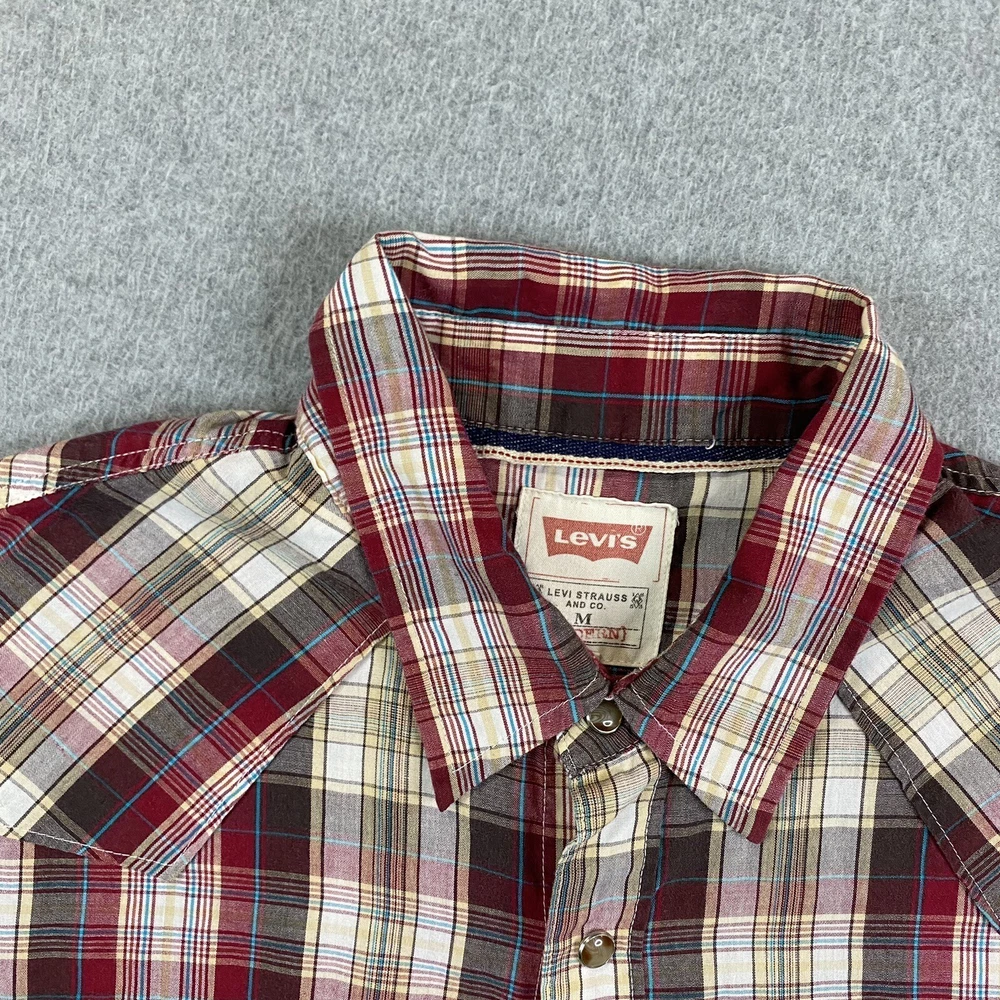 Sleeve Length: Long Sleeve Color: Multicolor Type: Button-Up Pattern: Plaid Collar Style: Point Brand: Levi's Fit: Regular Features: Pockets, Easy Care Size Type: Regular Accents: Button Occasion: Workwear Fabric Type: Woven Size: M Department: Men Vintage: No Material: Cotton, Polyester Closure: Snap 出品者のメモ: “Item is in used condition with no holes or stains.” Theme: City, College, Cowboy, Dad, Outdoor, Preppy, USA, Western, casual, workwear, american, texas\, texas, chore, ranch, barn Neckline: Collared Country/Region of Manufacture: Indonesia
