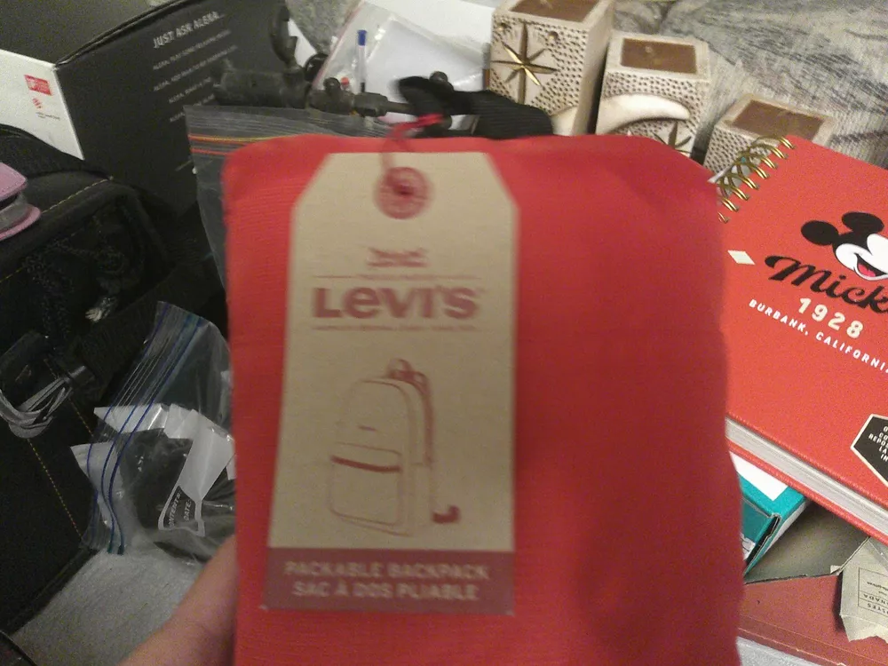 Levi's packable red backpack new with tag red Any questions please email. Combined shipping available, please request invoice. International buyers please contact me for a shipping quote. Sold as is with no returns Thanks for looking