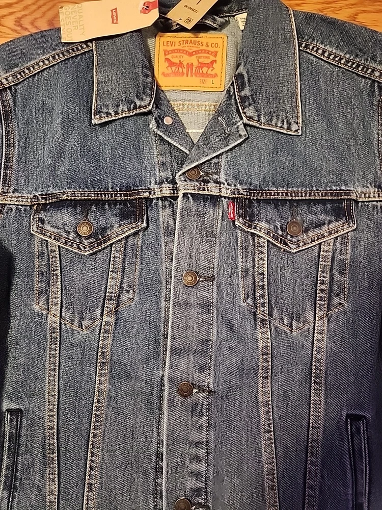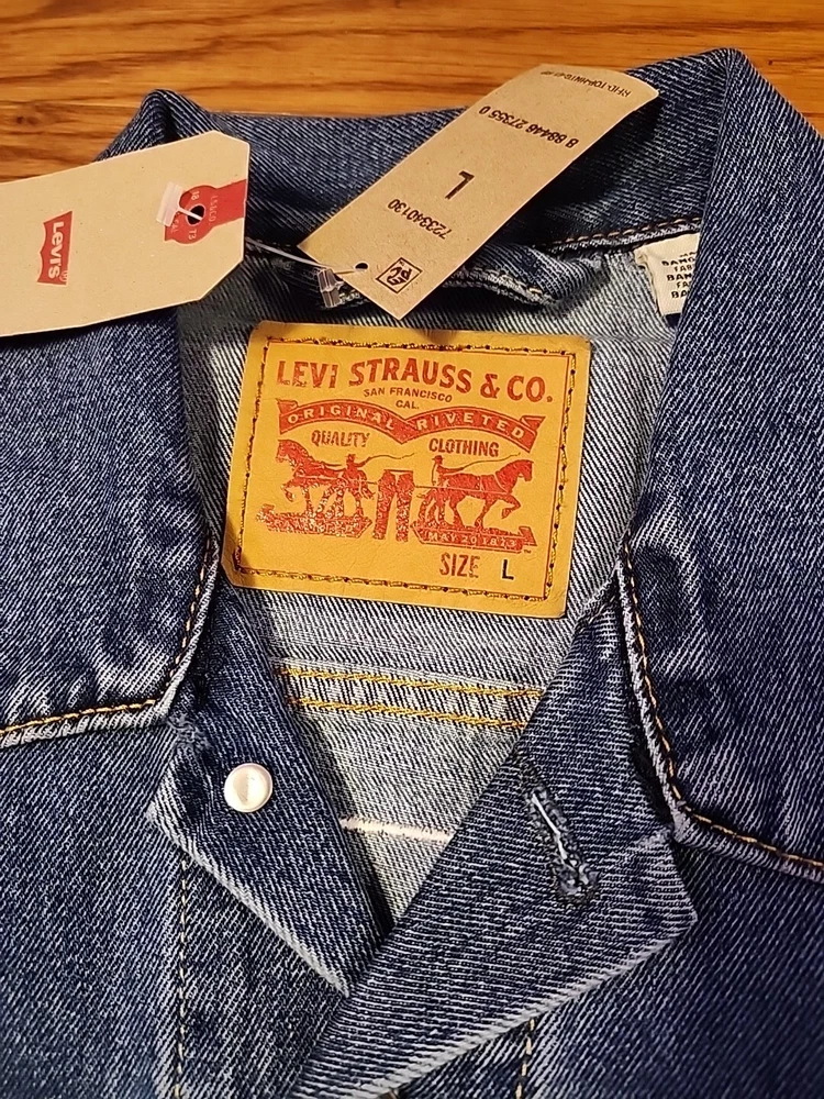 Closure: Button Theme: Beer Color: Blue Jacket/Coat Length: Short Country/Region of Manufacture: Bangladesh Brand: Levi's Lining Material: no lining Fabric Type: Denim Vintage: Yes Pattern: Solid Size Type: Regular gtin13: Does not apply UPC: Does not apply Size: L Style: trucker Department: Men Accents: Embroidered Outer Shell Material: Cotton Features: Collared, Limited Edition, Pockets, workwear Type: Jacket