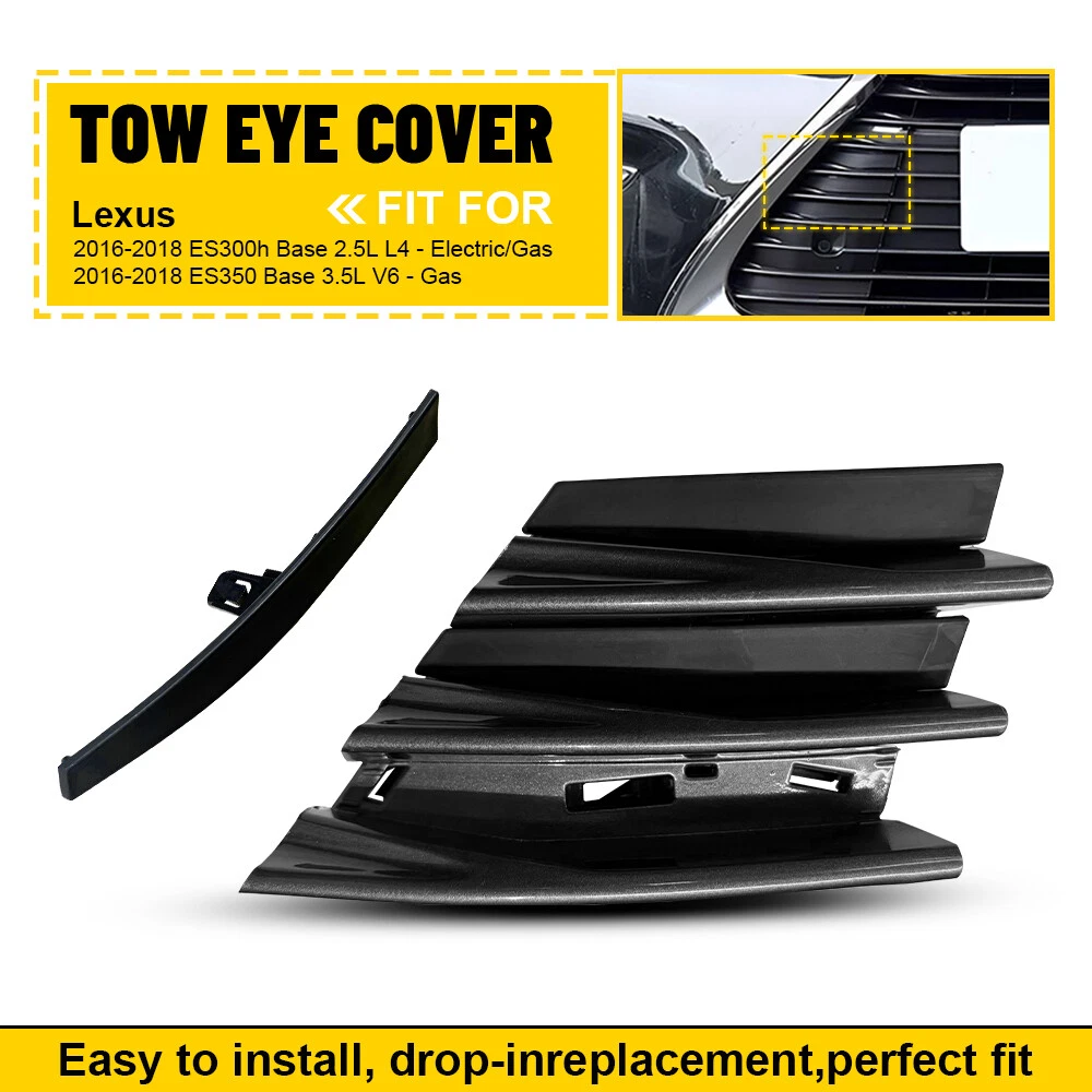 This front bumper tow hook hole cover fits my 2017 Lexus ES350 perfectly! The black ABS plastic matches the car’s finish, and it looks like a factory part. Installation was quick—just snaps right in without any hassle. The material feels sturdy and durable, so I’m confident it’ll hold up against weather and wear. It blends seamlessly with the bumper, giving a clean, finished look. Great OEM replacement at an affordable price—highly recommend for anyone with a 2016-2018 ES300h or ES350!