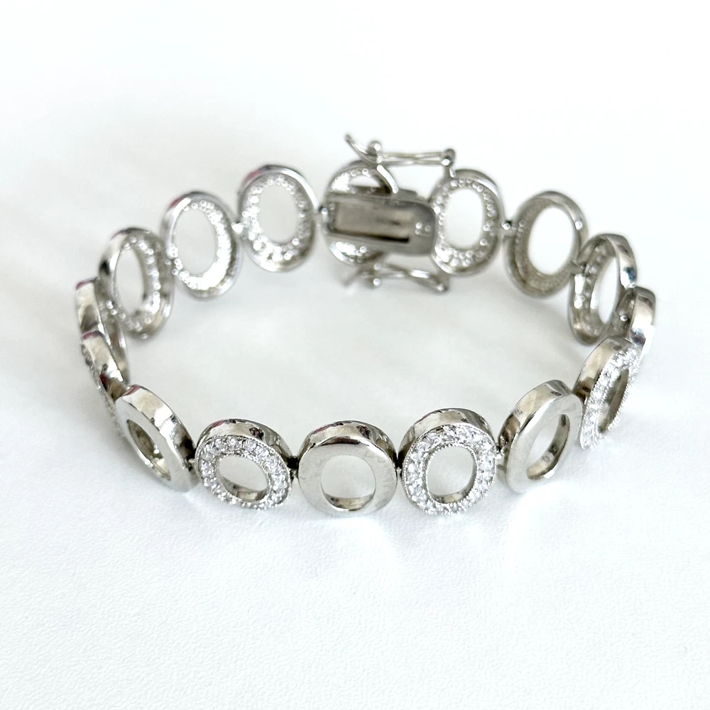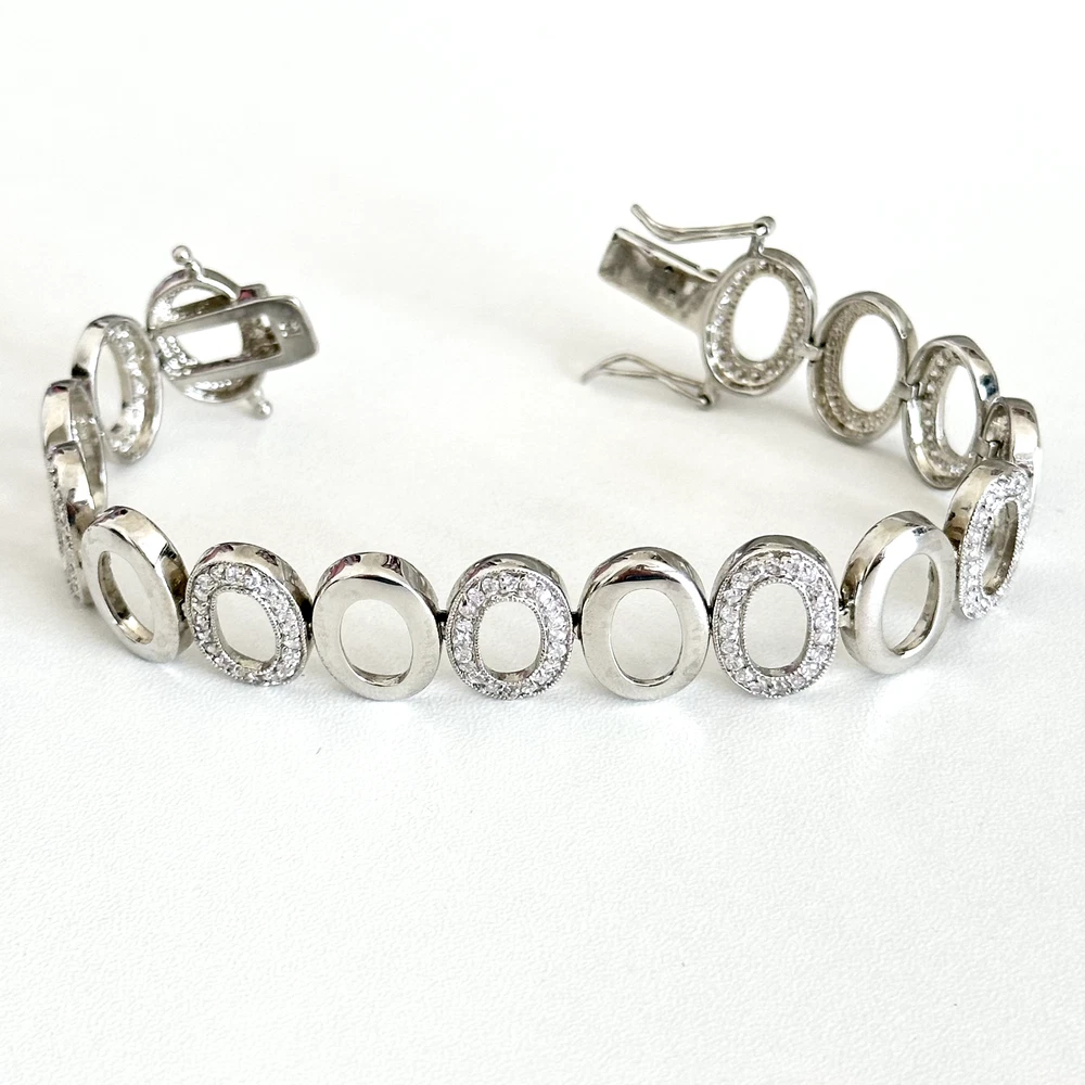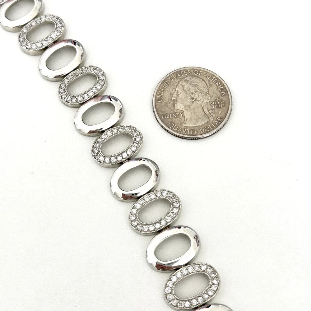 Lia Sophia Mesmerize Silver Rhinestone Oval Bracelet 7 Inch