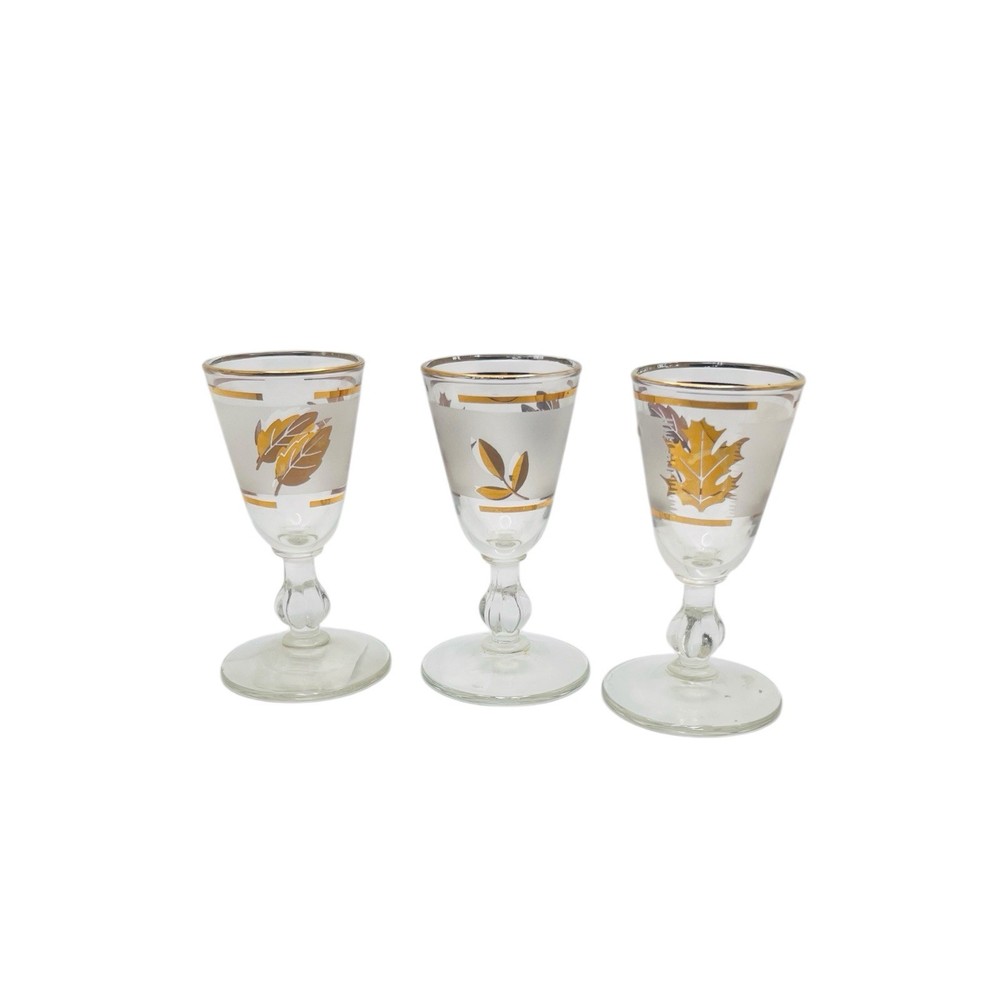 The Libbey 24K Gold Leaf Cordial Glassware Set includes six pieces of round shot glasses with a vintage/retro design featuring gold leaves. These elegant glassware pieces are perfect for all occasions and add a touch of MCM style to any home bar or kitchen decor. Made in the United States. Each glass can hold up to 2 ounces. 3.5 inches in height and 2 inches in width, making it a unique and eye-catching addition to your collection. No notable flaws such as chips or signs of wear from age. Please note I try to get the most accurate pictures and at times there might be a reflection or variation in coloring due to the lighting. Approximate Dimensions: 3.5" Tall Holds 2 fluid ounces Total weight without packaging (11 ounces) SHIPPING - All items are shipped within 1-3 business day of receiving payment. I do not ship during weekends and/or holidays. The system will compute your postage based on your zip code. I will select the most cost-efficient method of shipping based on package rates at the time of shipping. If you want a particular service, you will need to let me know at the time of sale. RETURNS - All sales are final unless the item does not match the item description product MUST be returned within in 30 days. Please check my other items and thank you for supporting our small family business!