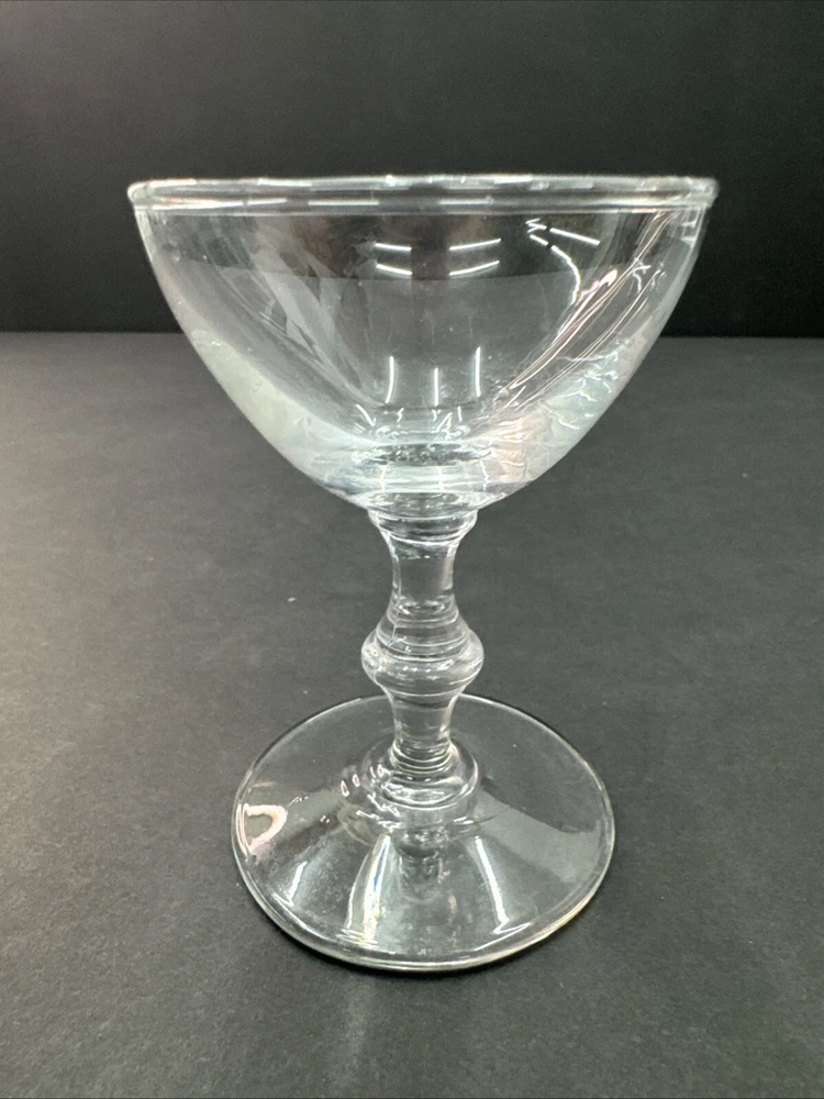 The Georgian Liquor Cocktail Glass by Libbey Glass Co. is a vintage two-piece set made in the United States. This elegant cocktail glass features a Georgian pattern with clean lines, a round shape, and a capacity of 2 ounces. It is crafted from clear pressed glass and is ideal for all occasions. The glass is part of the Georgian product line by Libbey Glass Co., showcasing a classic design that adds a touch of sophistication to any barware collection.
