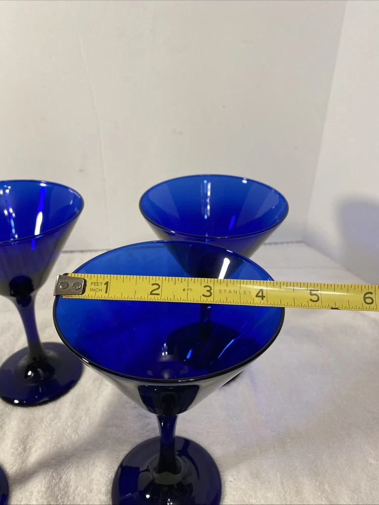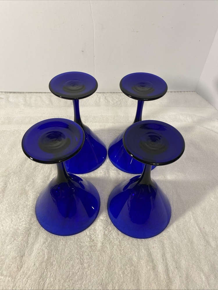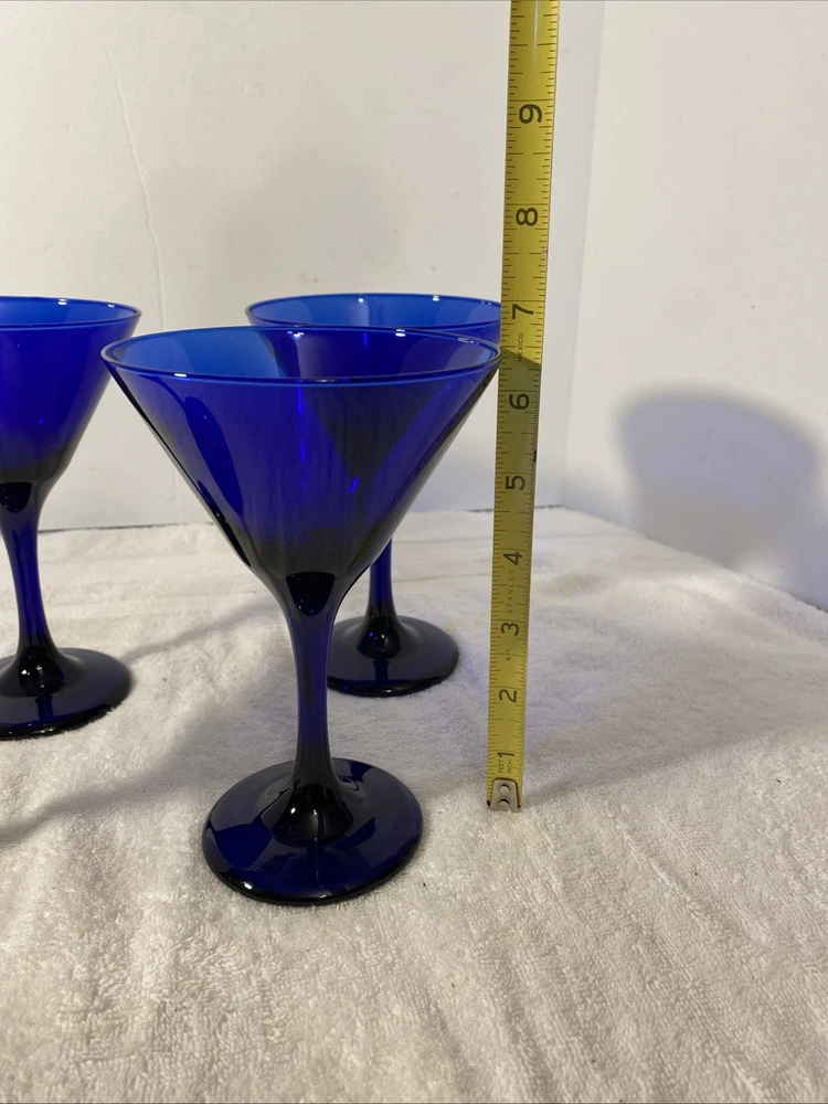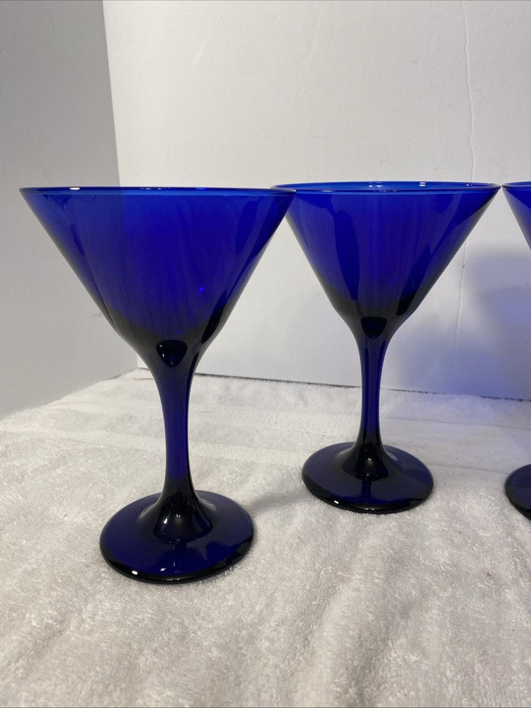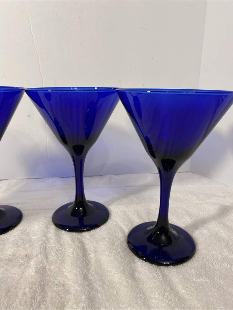 Set of 4 Libbey 6.5" Dark Cobalt Blue Martini Glasses Wine Cocktail Party Goblet. Condition is Used. Shipped with USPS Ground Advantage.
