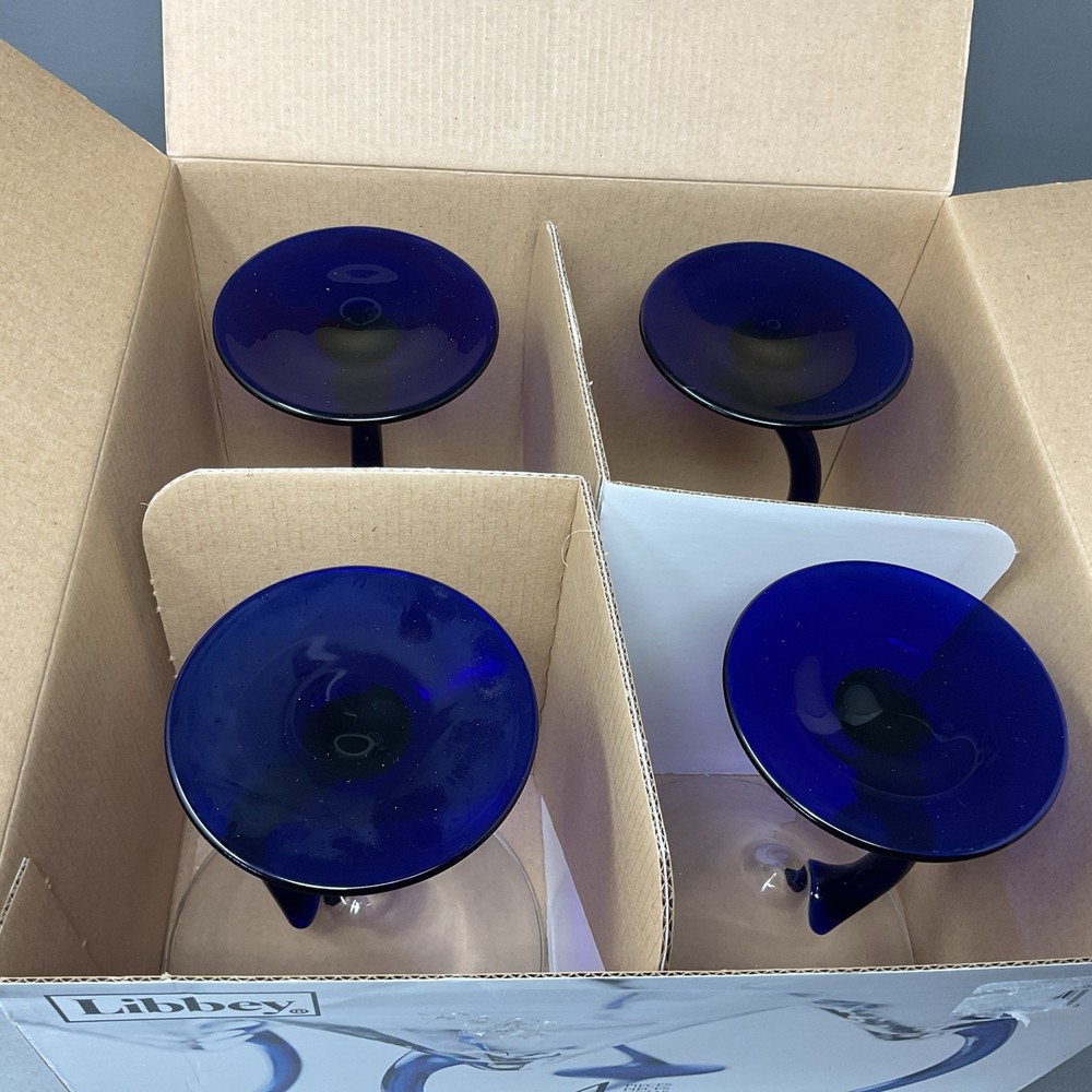 The 4 LIBBEY Curved Stem Swerve Cobalt Blue Martini Cocktail Glasses are a stylish and modern addition to any home bar or kitchen collection. These elegant round glasses have a unique swerve design and a vibrant cobalt blue color, perfect for all occasions. With a capacity of 6.5oz and a set of four, they are the ideal choice for serving a variety of cocktails in a sophisticated manner. Made of high-quality glass, these martini glasses from Libbey are sure to impress guests and enhance any drinkware collection.